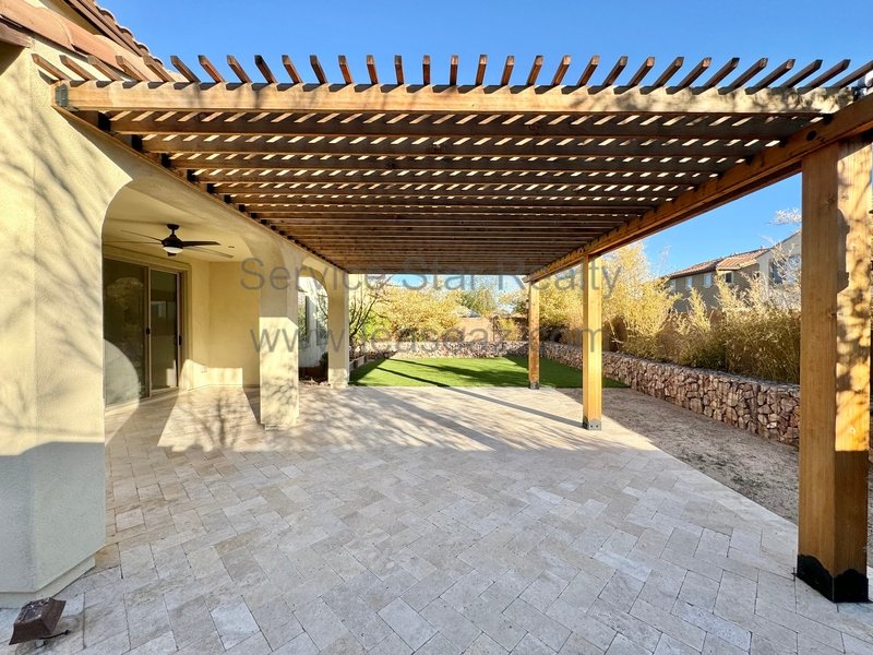 The rear of the home is the true showstopper, with a turf lawn, superb lattice covered patio, and lush landscaping.
