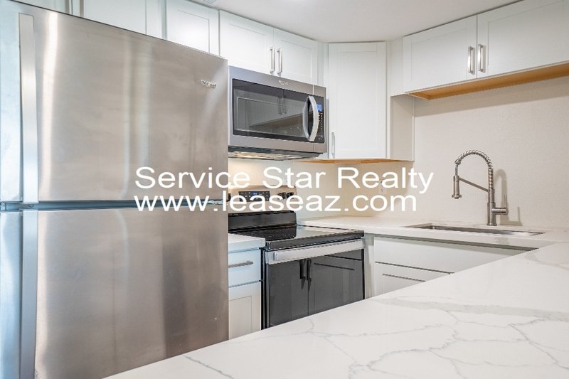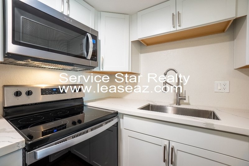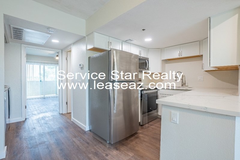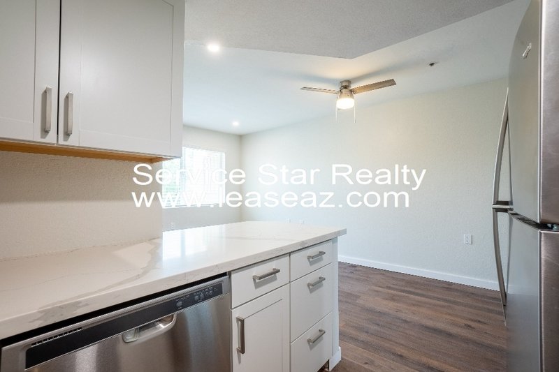 This third-floor, condo has been completely remodeled with a sparkling white kitchen, stainless steel appliances, deep farm style kitchen sink and brand new quartz countertops. The home is within a community that sits on 23 beautifully landscaped acres, with a heated pool, spa, barbeques, and an on-site restaurant. The space comes with double closets in the bedroom and opens to the balcony. The location is ideal, just minutes away from Peoria Sports Complex and Arrowhead Mall.