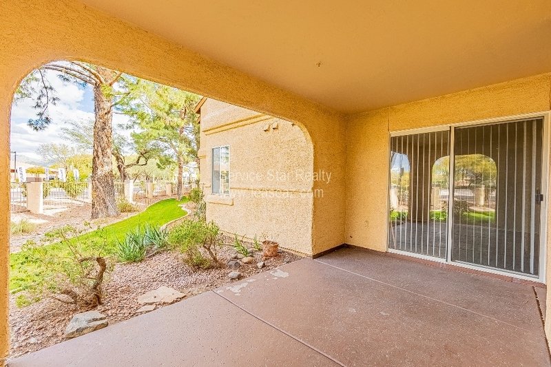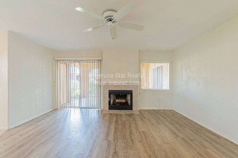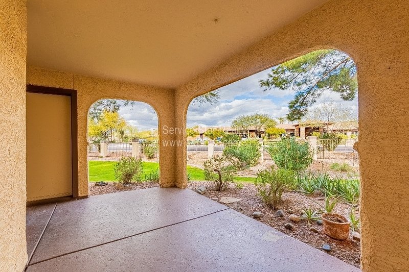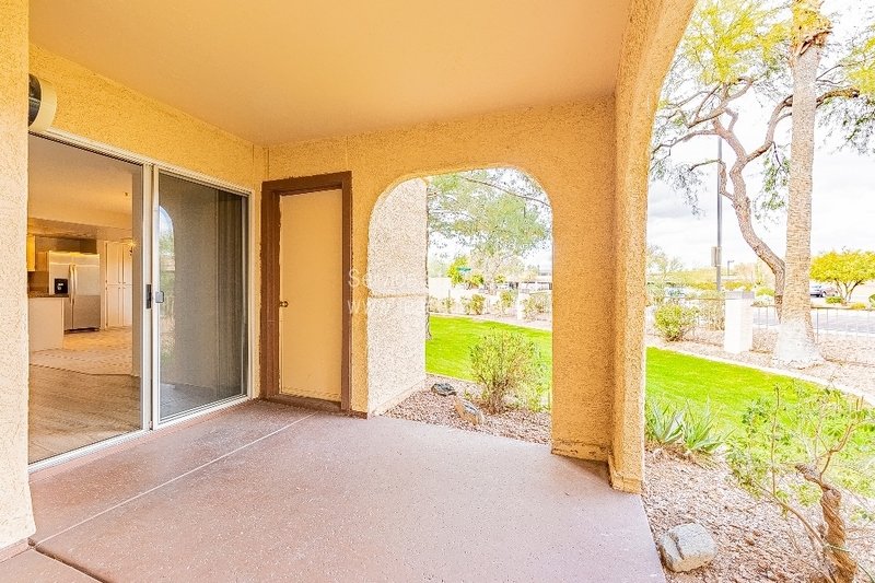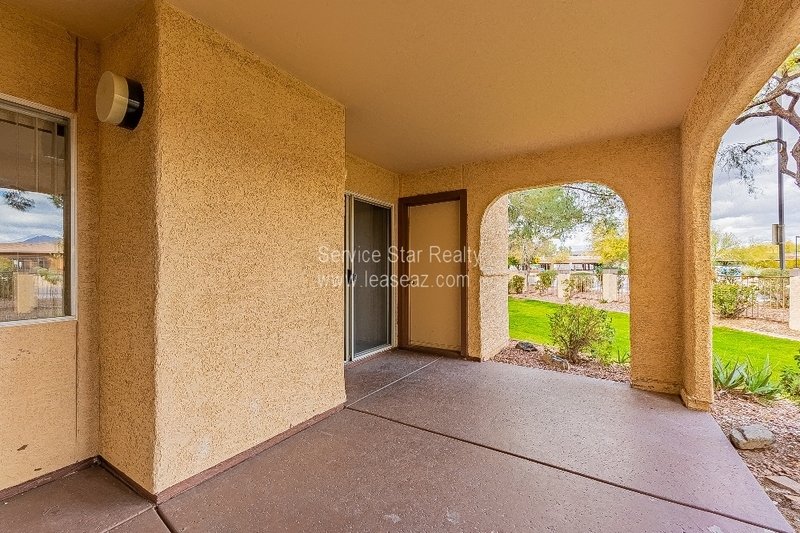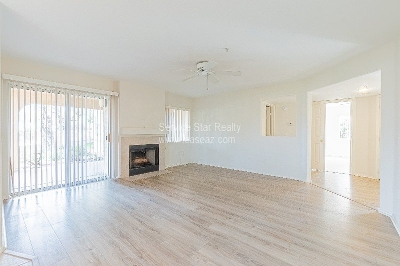 Located in the beautiful community of Starfire at the Villages just off 96th St and Mountain View, this hidden gem won't last long. This 3 bedroom/2bath ground level condo condo features newer kitchen appliances, granite countertops, breakfast bar and an oversized living area with woodburning fireplace which flows seamlessly to the dining area that overlooks the lush grounds of the well maintained community. If you prefer to dine al fresco, enjoy the shady covered patio with magnificent views accessible by multiple sliding glass doors. A split primary bedroom with dual sinks, and walk-in closet. The community features a heated pool/spa, tennis & pickleball, and BBQ areas. All this and close distance to shops and restaurants, freeway access, Talking Stick Resort, The Pavilions, and so much more. This property will not last long - fill out an application today!
