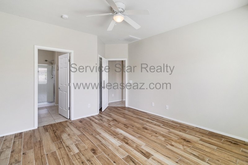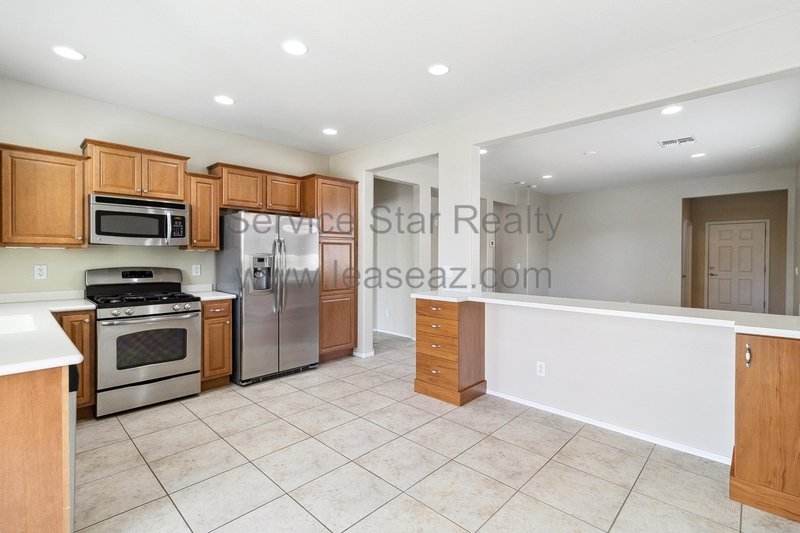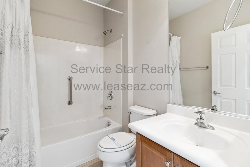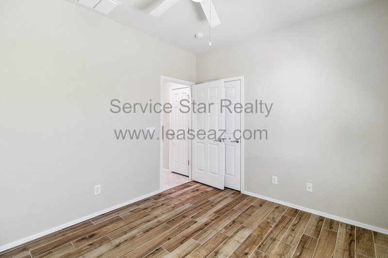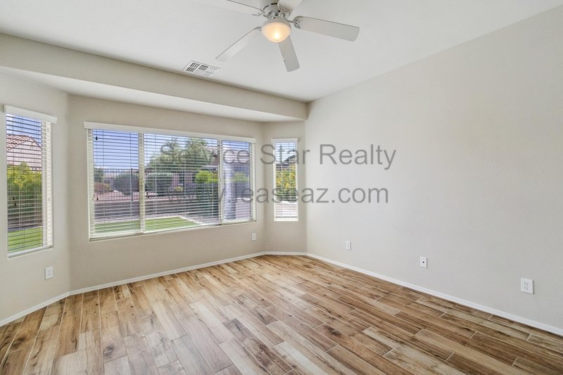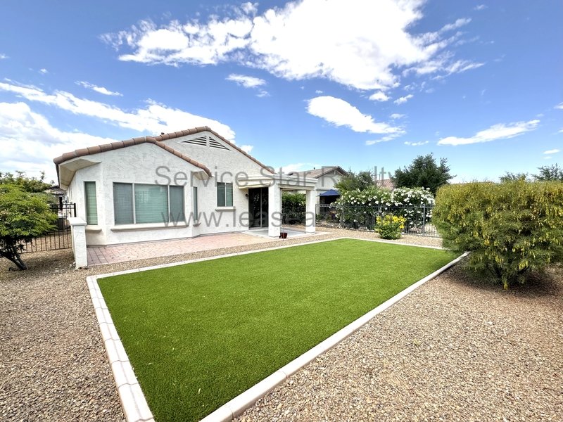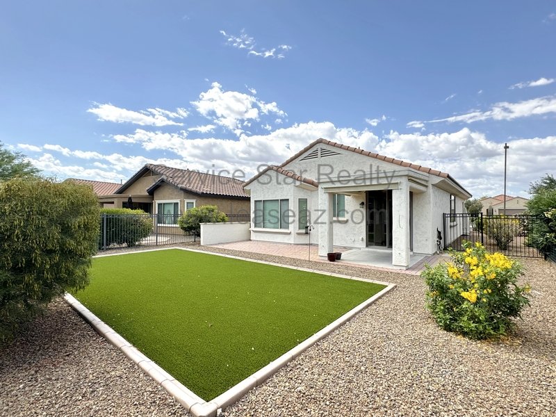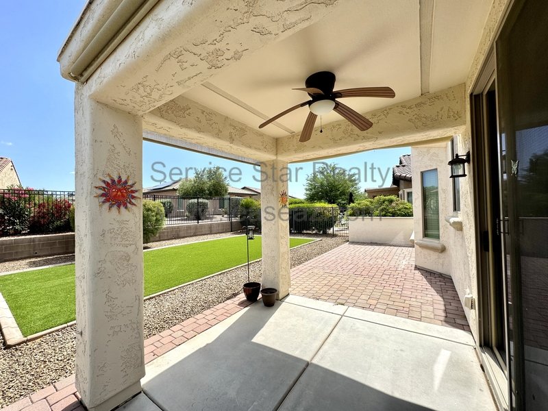 Enjoy the fantastic Arizona climate year-round on your covered back patio. The outdoor space features a lush turf lawn, pavers, sun shades, and low-maintenance desert landscaping. This home truly offers the best value in the area!