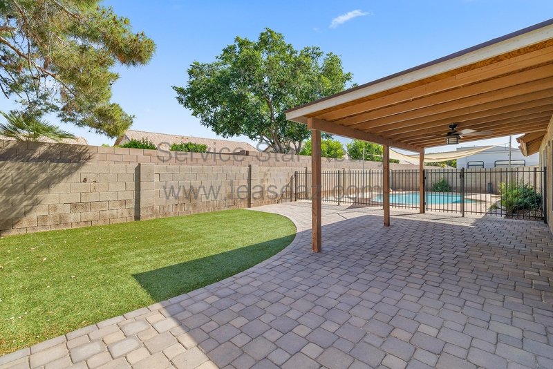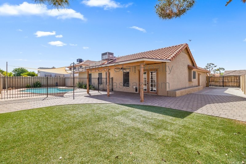 As you step inside, the main living area features beautiful French doors that look out onto your backyard with pool, covered patio wth pavers, and turf lawn! Gorgeous upgrades everywhere - including wine/beverage fridge!