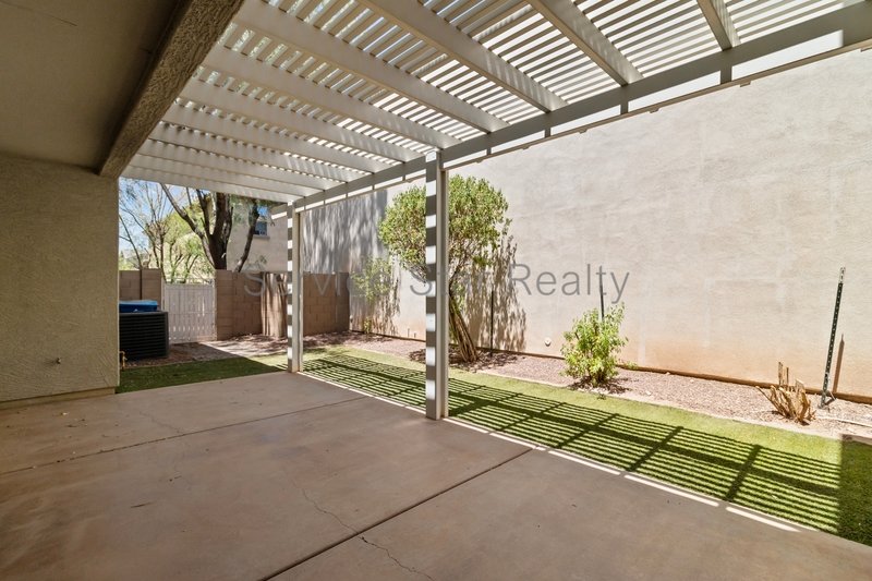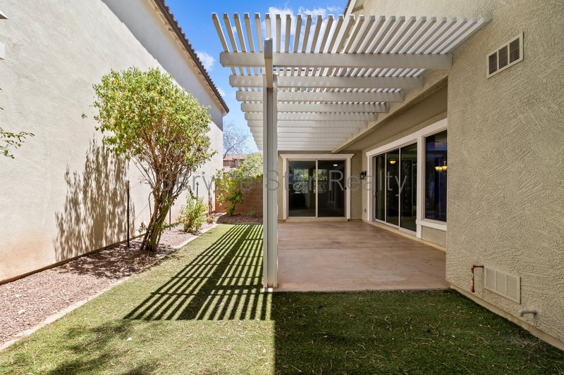 Two sets of sliding glass doors lead you to a private, low-maintenance backyard complete with extended pergola-covered patio and lush artificial turf ideal for relaxing or entertaining year-round.