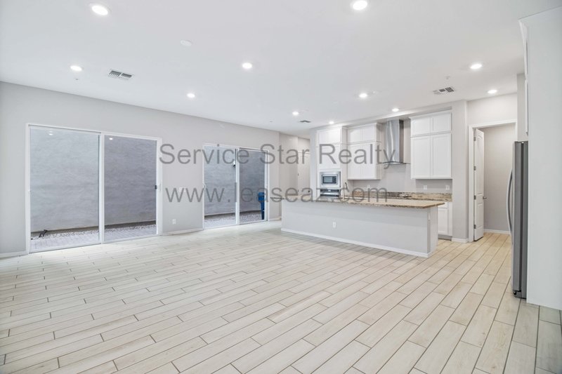 Gorgeous highly upgraded home in La Costera Landing! As you enter through the gate off the driveway and 2 car garage, you'll find a detached private guest casita with walk in closet and 3 pc bath just perfect for guests, private office, or studio work space. Across the court yard you'll enter into the main house to find beautiful wood look tile floors and fantastic open concept living space. Upgraded kitchen with massive island features stainless steel appliances, white cabinets, large pantry, quartz countertops, and tons of storage, that opens up to the living and dining areas. Dual sliding doors open to side patio/yard and are great for entertaining.