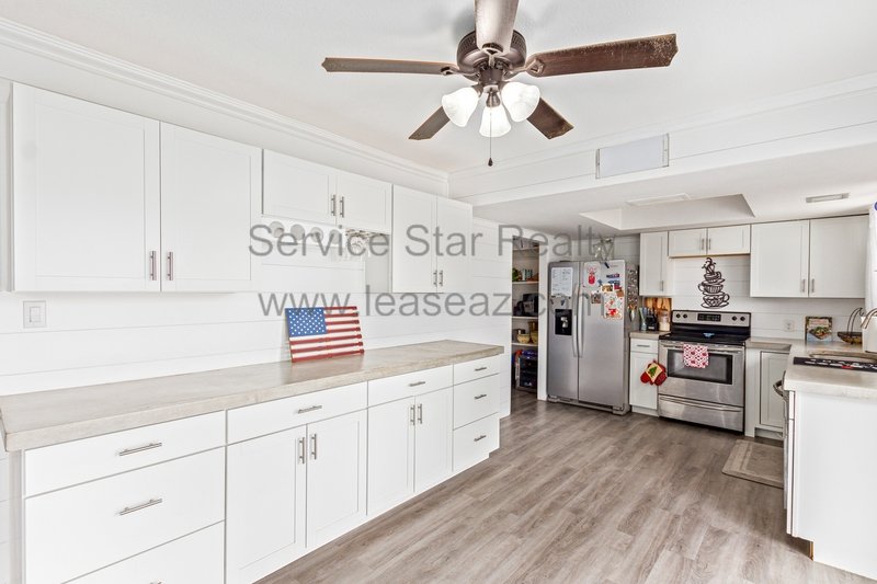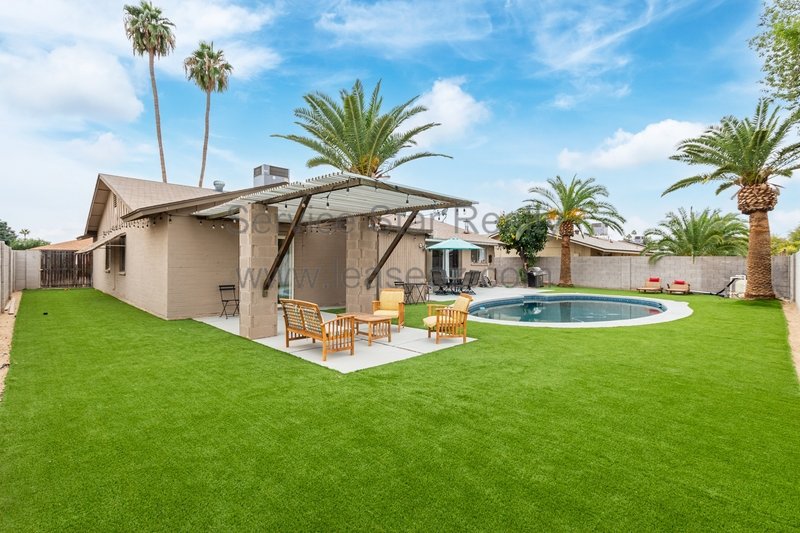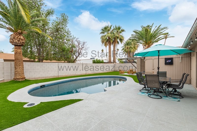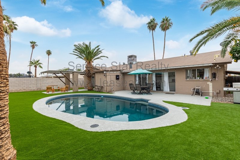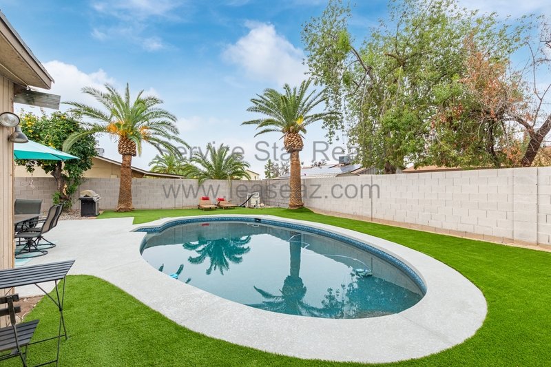 Behold this stunning 3-bedroom, 2-bathroom oasis in Phoenix, complete with a refreshing pool! The kitchen is a chef's dream, boasting elegant white cabinetry, sleek stainless steel appliances, and ample counter space. The expansive primary bedroom features a cozy sitting area and a luxurious en-suite bathroom with a jetted tub, separate shower, and a spacious walk-in closet. Step outside to savor your morning coffee or unwind in the evening on the covered patio, offering a picturesque view of the pool and the effortlessly maintained backyard. Ideally situated near I-17, this home provides convenient access to a plethora of shopping, dining, and entertainment options. No pets please!