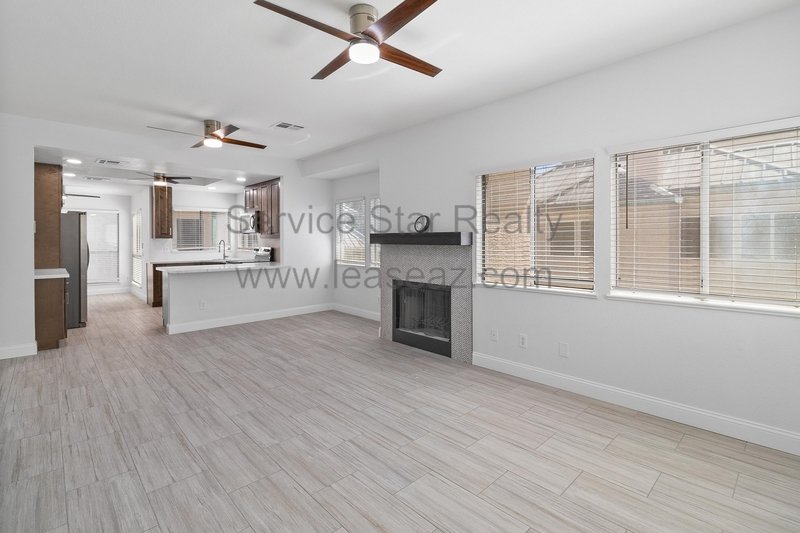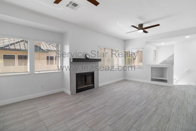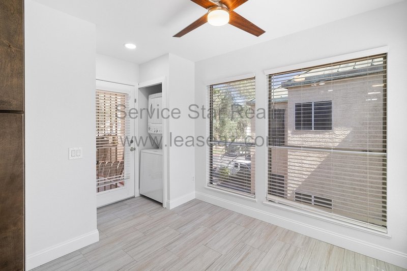 Modern 2 bedroom, 2 bathroom home featuring stylish tile flooring throughout, upgraded cabinets, sleek countertops, and contemporary fixtures. Enjoy stainless-steel appliances, upgraded ceiling fans, and a convenient in-unit washer and dryer.