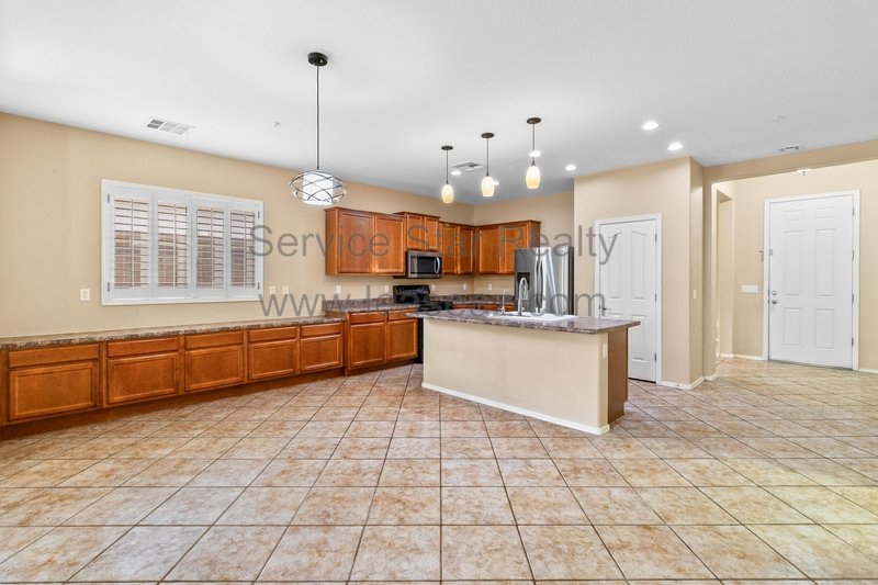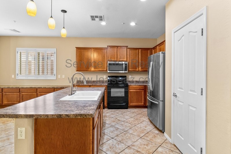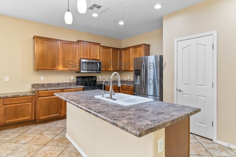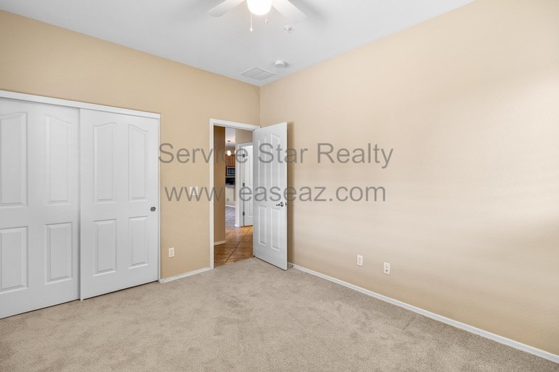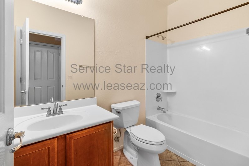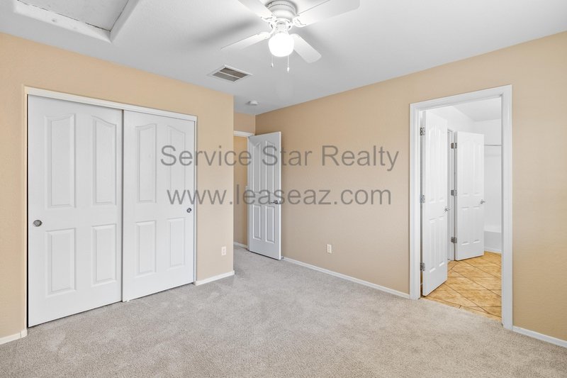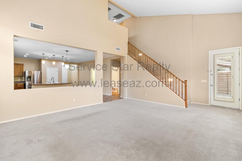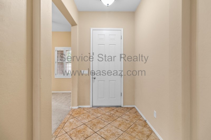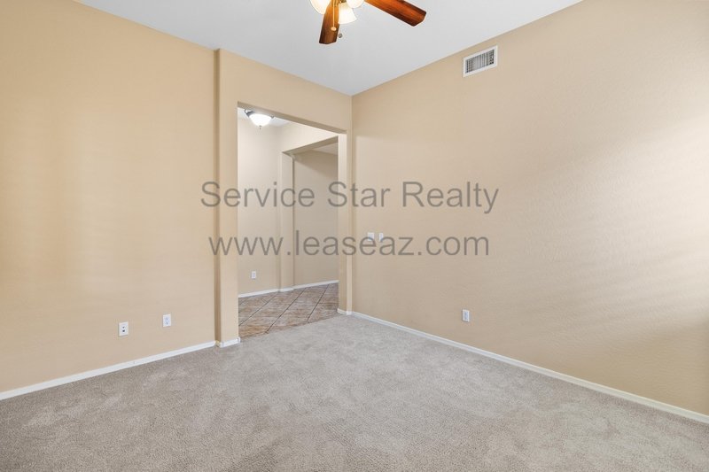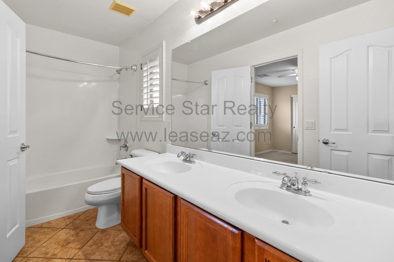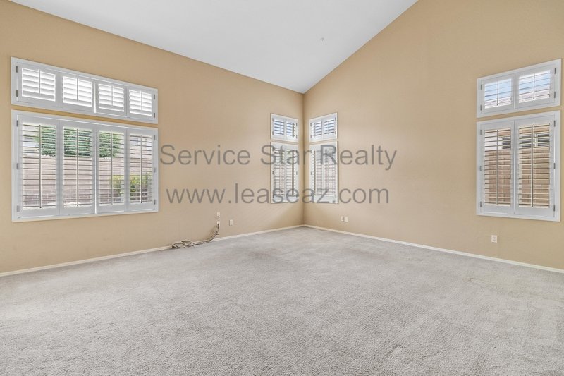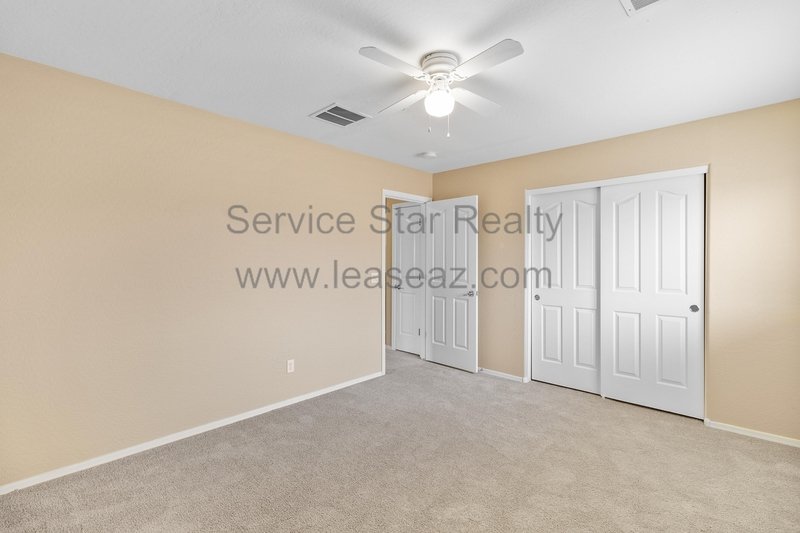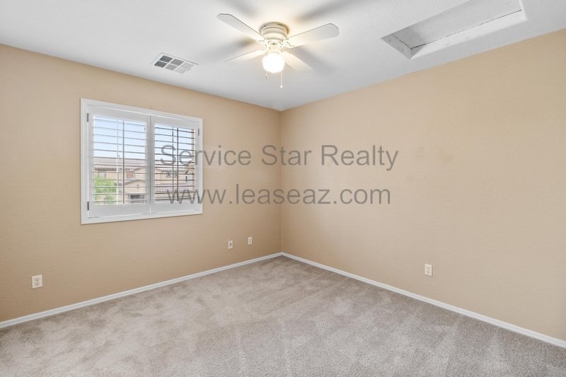 Fantastic 5 bedroom, 3 bathroom home in Vistancia Village with over 2600 square feet of living space is available now! This large backyard is perfect for entertaining, while also being very low maintenance! Enjoy a covered patio, custom stone firepit with bench seating, extended paved area and artificial turf! This home offers a huge kitchen equipped with all appliances, an oversized kitchen island, walk in pantry and extended cabinets into the dining area for extra storage. Plantation shutters throughout offer a gorgeous modern look and allow tons of natural light when you want it. There are 2 bedroom and a den located on the first floor, with remaining 3 bedrooms upstairs. The large master bedroom is located on the second floor and includes a private bath with double sinks, garden tub and separate walk in shower. The Community of Vistancia offers residents a Clubhouse, Community Pool, Greenbelts and a Workout Facility.