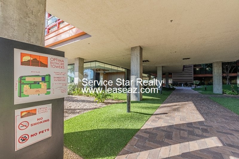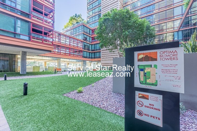 You are going to love this beautiful condo and the wonderful view of the mountains to the North in high contrast to the buildings in the Biltmore Financial District. This home is located on the 4th floor and has a vast patio area that opens up to a shared, private garden with lush landscaping. Optima Biltmore residents have full access to the buildings stellar amenities. These include an underground parking garage, on-site fitness center with locker rooms and a sauna, on-site concierge service, a community clubhouse and beautiful rooftop pool, spa and lounge areas with stunning city views. This ideal location at 24th Street & Camelback plants residents directly within the Biltmore Fashion District, where they have full access to shopping and posh restaurants. Rentals do not come available very often in this building so do not delay and apply today!