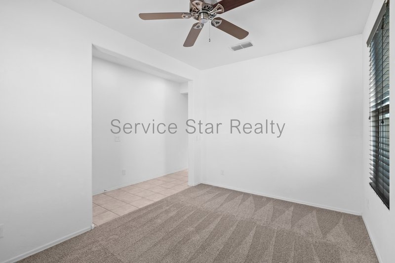 Inside, you'll find three generously sized bedrooms and a separate front den, ideal for a home office, study, or creative space. Each room includes ceiling fans and upgraded window treatments, adding both comfort and efficiency throughout the home.