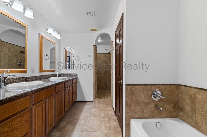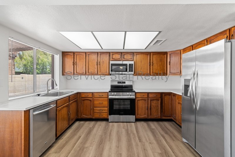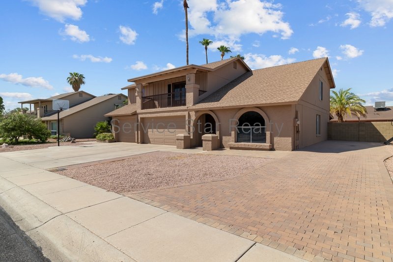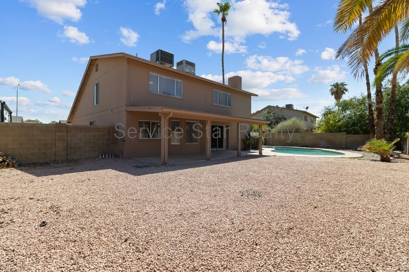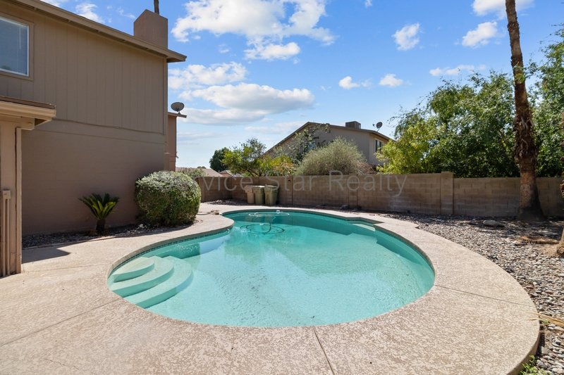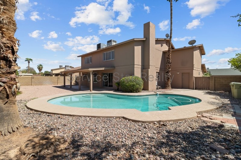 Prepare to call this stunning 4-bedroom, 2.5-bathroom home with a pool your "Home Sweet Home." Boasting nearly 2800 square feet of space, this residence is perfect for entertaining. Nestled in the highly desirable Copperwood neighborhood, the home offers a grand entrance that showcases the expansive open layout. Enjoy the vast formal living and dining rooms, as well as a spacious family room adjacent to the kitchen featuring a charming brick wood-burning fireplace. The double door entry, vaulted ceilings, and arched doorways enhance the overall ambiance. The generously sized bedrooms provide ample comfort. The well-equipped kitchen includes a fridge, dishwasher, oven/stove, built-in microwave, pantry, and breakfast nook. The primary suite is a true retreat, featuring double French doors leading to a balcony, a luxurious bathroom with dual sinks, a separate tub and walk-in shower, and a massive walk-in closet. The laundry room offers cabinets and counters for additional storage and folding space. Outside, you'll find a 3-car garage, covered patio with recessed lighting and a ceiling fan, and a refreshing pool with weekly pool service included. This home has new paint, kitchen countertops and flooring. New photos coming soon!