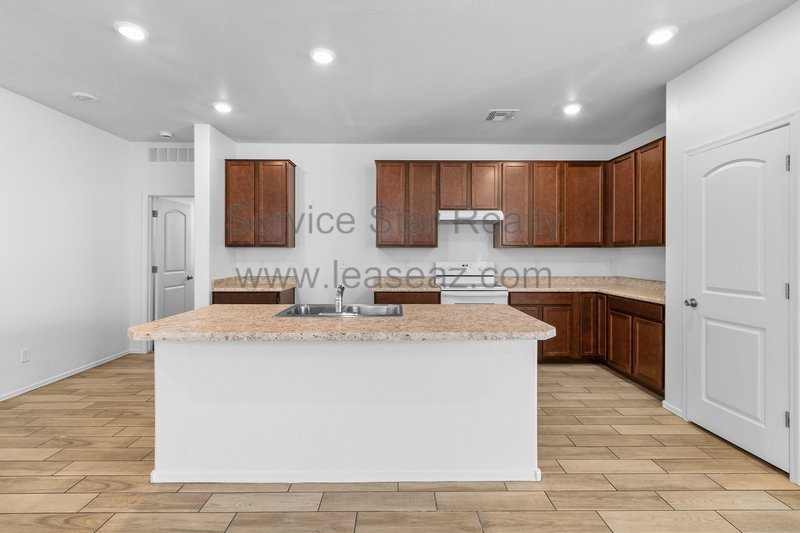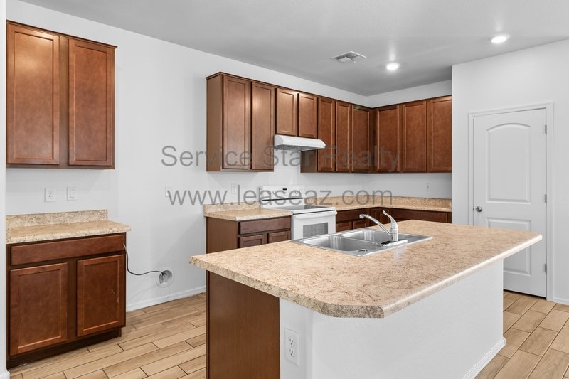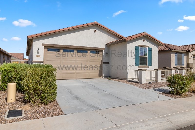 This beautiful 4+2 home in the South Phoenix area offers convenient access to the 10/17 and 202 freeways. Nestled just above South Mountain and next to Manzanita Park, with an additional community park across the street, it boasts a welcoming front porch entrance and a great room style with tile plank wood-look flooring and a spacious kitchen with a center island. The split floor plan features a master bedroom at the rear of the house, complete with a large walk-in closet, dual sinks, a full bath with ample storage, and a separate toilet room. The three additional guest rooms are also strategically placed to provide plenty of privacy. Outside, a covered patio and a low-maintenance gravel yard make this an ideal retreat to call home.