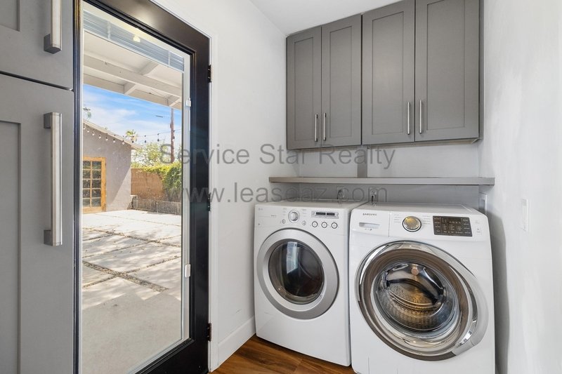 Just beyond the kitchen is a laundry room / mud room that connects to the rear yard.