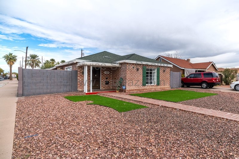 If walls could talk built in 1936, this beautiful 3+2 custom brick home has grown up with Phoenix! Located in the FQ Story Historic District in Central Phoenix surrounded by some of the great homes of Phoenix. Celebrating the Bungalow/Craftsman styling, this home features exposed brick and a modern twist exposed HVAC venting system giving the home an industrial loft feel! The kitchen which features white cabinetry, stainless steel appliances, and granite countertops has been updated and opens into the great room, but retains the charm of the bungalow. There is the laundry room with a washer and dryer off the kitchen. The master bedroom was added on with a great focal brick wall an amazing master bath, and a walk-in shower. There are two guest bedrooms and a bath in the front of the home. The beautiful cobblestone courtyard is accessed by the great room the master bedroom, and the large front covered porch that increases the endless charm! The two-car is CLIMATE CONTROLLED with access off the side street and easy access to the homes private courtyard. Additional parking in the front driveway as well as two parking permits for off-street parking is included A great find in a wonderful community! You won't want to miss the opportunity to live in this beautiful home!