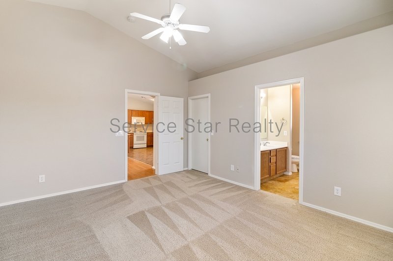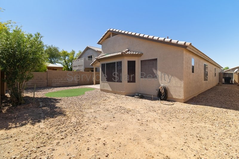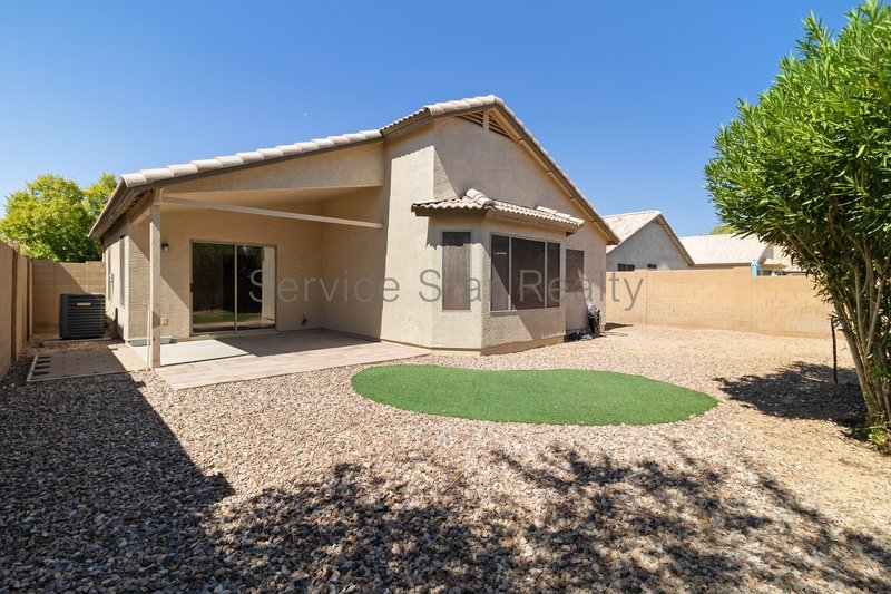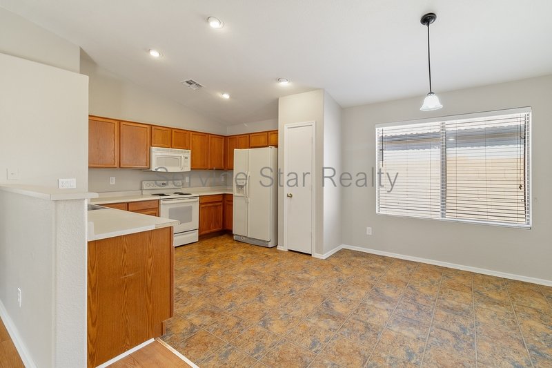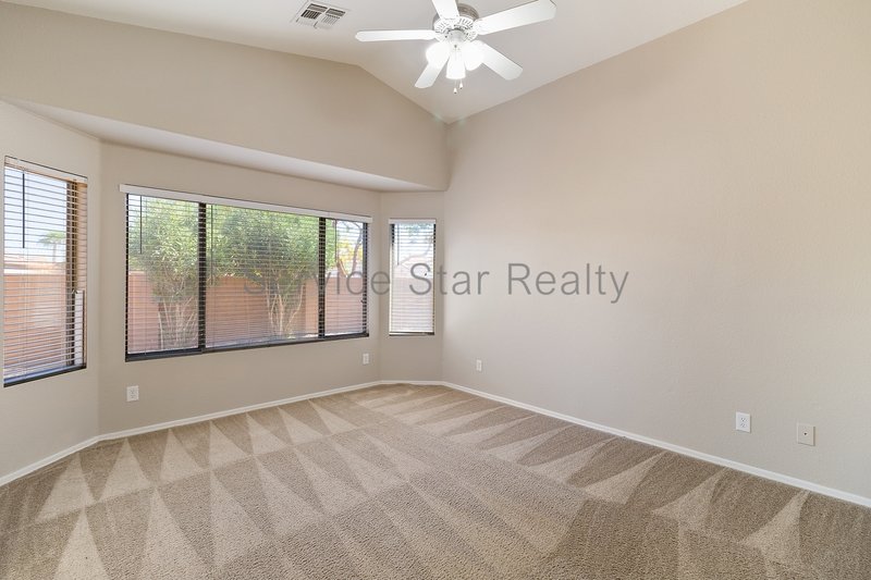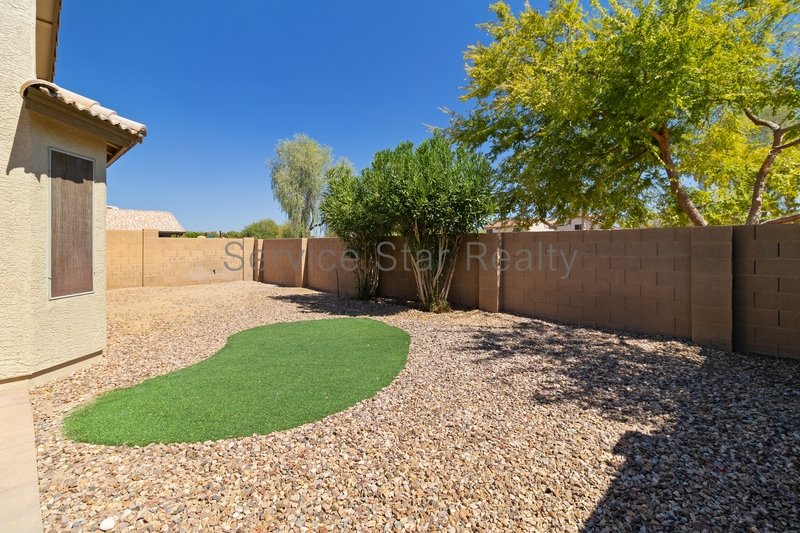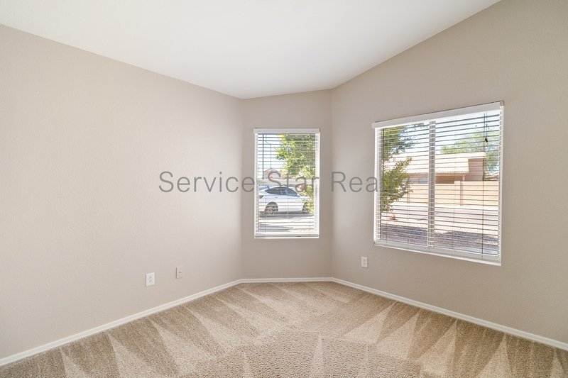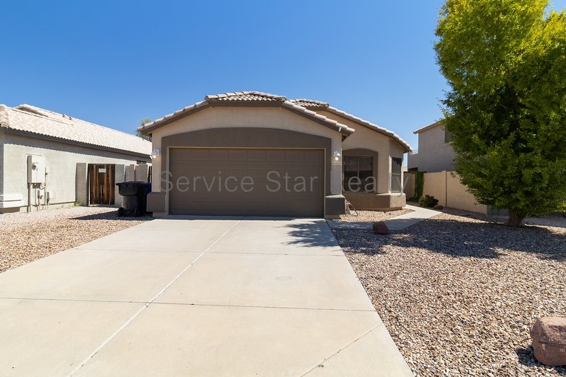 Step into this delightful single-story home in Surprise, featuring 3 bedrooms plus a den and 2 bathrooms. Upon entry, you are greeted by a spacious great room illuminated by large windows that fill the space with natural light. The den, situated off the great room, offers versatility as a home office or bonus room. The home also includes an inviting eat-in kitchen with remodeled cabinetry, a generously sized master bedroom with a walk-in closet, and a convenient ensuite bathroom. The split floor plan places the secondary bedrooms on the opposite side of the home for added privacy. Outside, the low-maintenance yard features rock and turf landscaping. The location is superb, nestled between Bell Rd and Greenway, offering easy access to a variety of restaurants, shopping centers, a movie theater, and the popular Surprise Stadium ideal for Spring Training enthusiasts. Commuting is a breeze with convenient access to Grand Ave and the Loop 303. Additionally, the community boasts a charming park just a short stroll away. 1/2 off first full months rent.