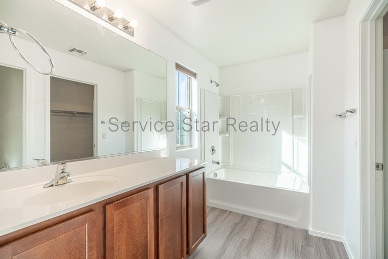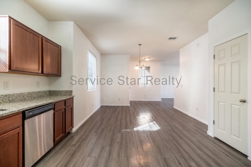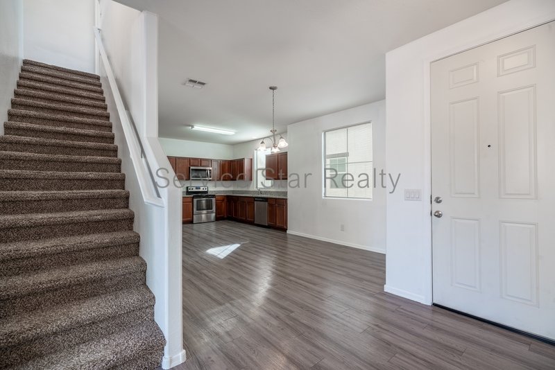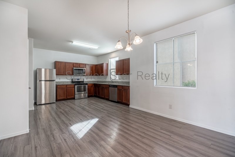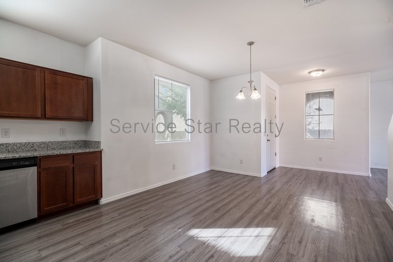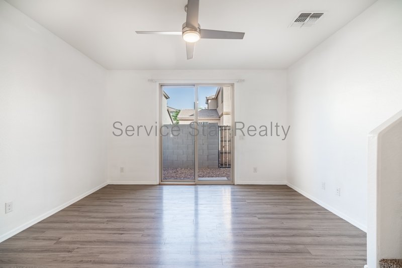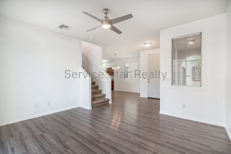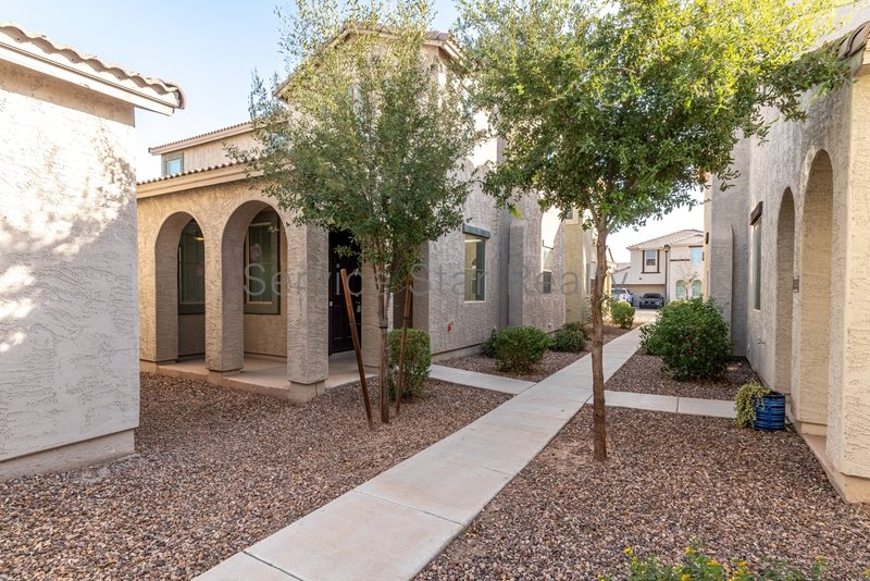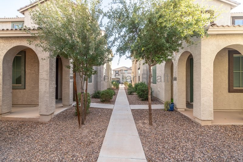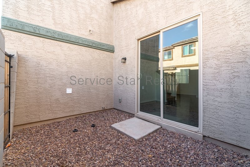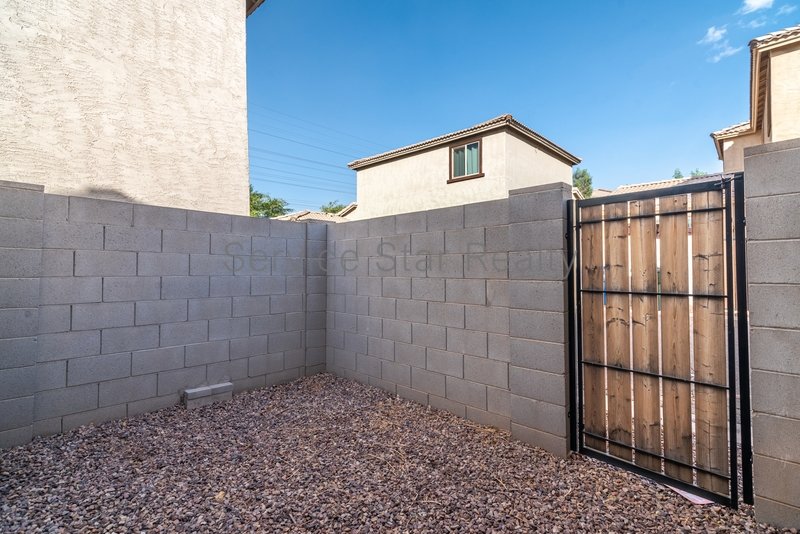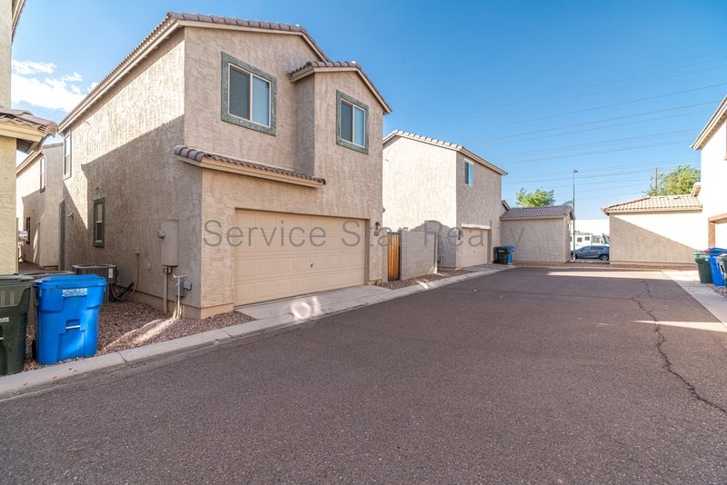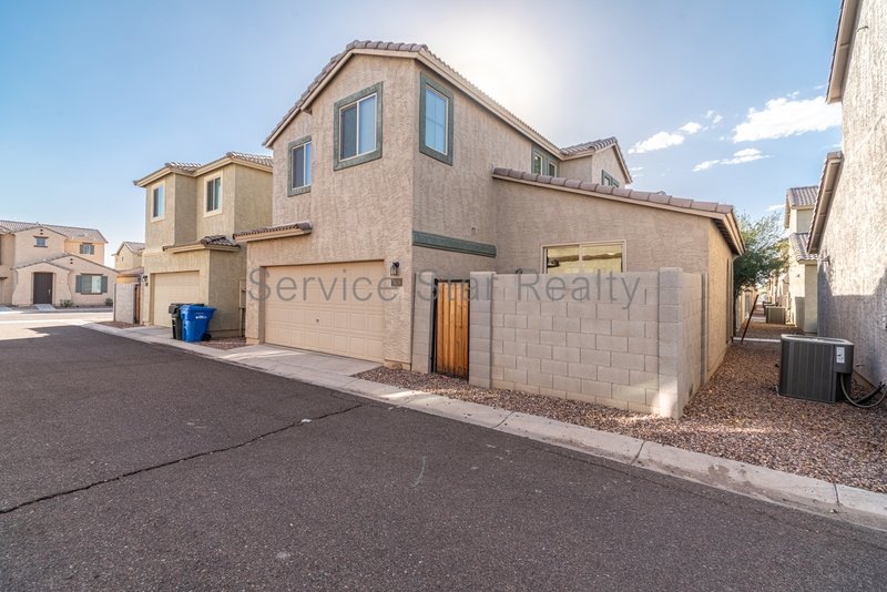 Welcome to this delightful 3-bedroom, 2.5-bathroom patio home, offering a low-maintenance yard for easy living. The open-concept layout of this home features charming laminate wood flooring throughout the first floor, complemented by a kitchen adorned with stainless steel appliances and granite countertops. A convenient powder room is located on the first floor for guests. Upstairs, you'll find the primary suite with a full bathroom, along with two well-proportioned secondary bedrooms and another full hall bath. Additionally, a dedicated laundry room adds to the home's functionality. Situated near the Loop 202 S and Lower Buckeye, this beautiful home offers both convenience and comfort for its residents. No pets please!