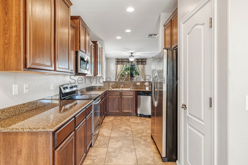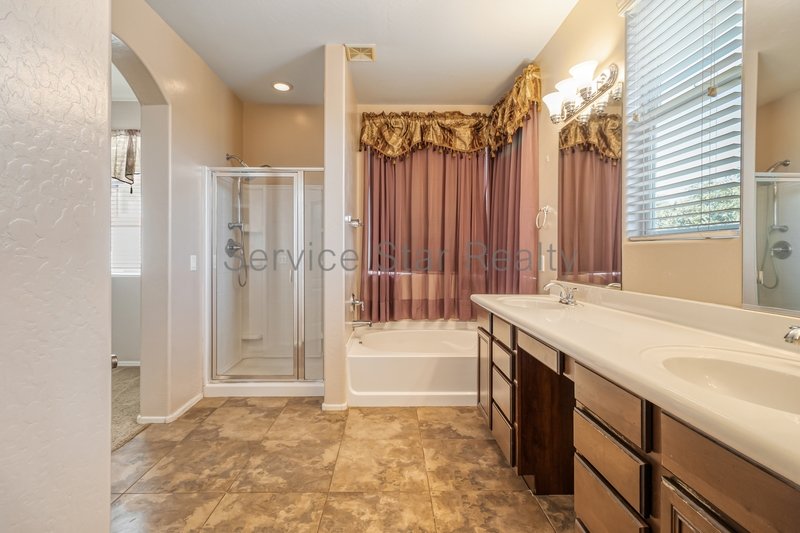 This stunning home offers everything you desire. Vaulted ceilings and ceiling fans create a spacious and comfortable atmosphere, complemented by upgraded 20-inch tiles that lead into the exquisite granite kitchen with stainless steel appliances. With both a Great Room and a living room, you'll have ample space for all your needs. The Master suite is a dream, boasting a separate shower and tub, dual vanities, and a walk-in closet. The backyard is perfect for relaxing, featuring a patio. The community is exceptional, with walking paths, a playground, a community pool and spa, and front landscaping provided by the HOA. This home truly has it all! No Pets Please!