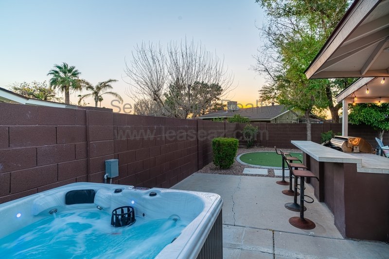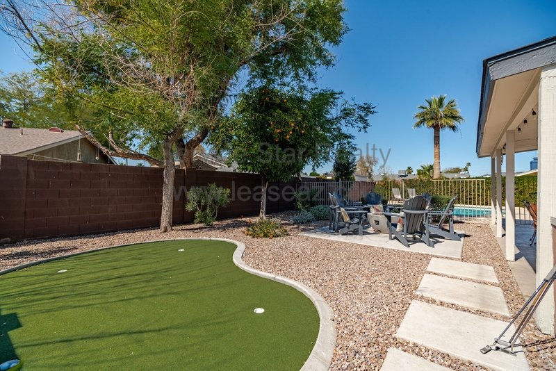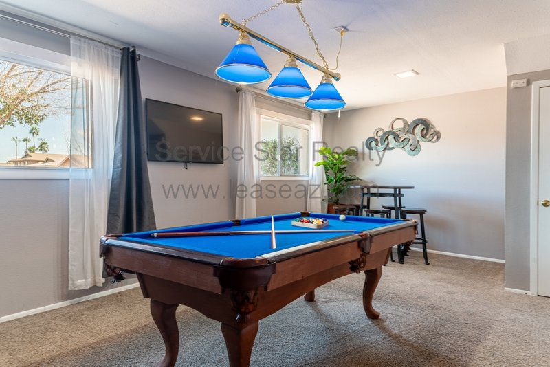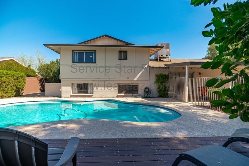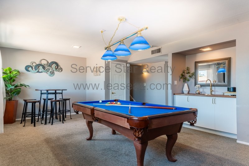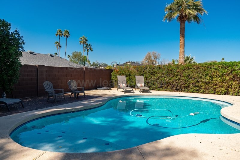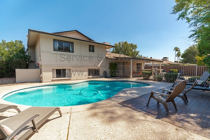 This amazing Scottsdale home is an entertainer's dream! Backyard has a sparkling pool positioned to the side of the yard, large, covered patio, built in BBQ, grassy play area, and mature trees, 4 bedrooms plus office, 4 bathrooms. Main level has wood tile floor, huge kitchen with lots of cabinet and pantry space. Eat-in kitchen and separate dining room. Large family room with patio doors that leads to large patio. Spacious master bedroom ensuite upstairs. Oversized guest bedrooms. Basement includes large living room with fireplace, guest bedroom and bathroom as well. Very close proximity to Chaparral Park/Dog Park, Indian Bend Wash walking trail, the "101" and "202", shopping restaurants and entertainment. Home comes fully furnished (including pool table) or items can be removed. Washing machine included, however tenant will need to supply their own dryer.