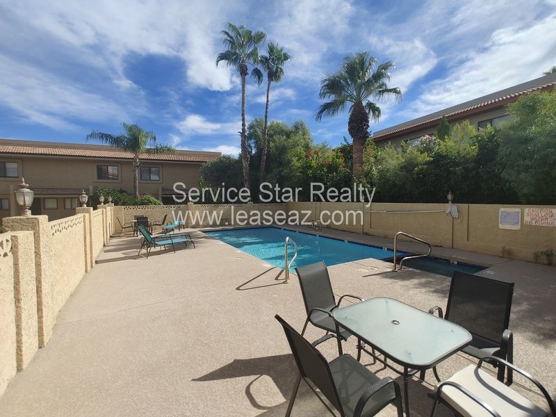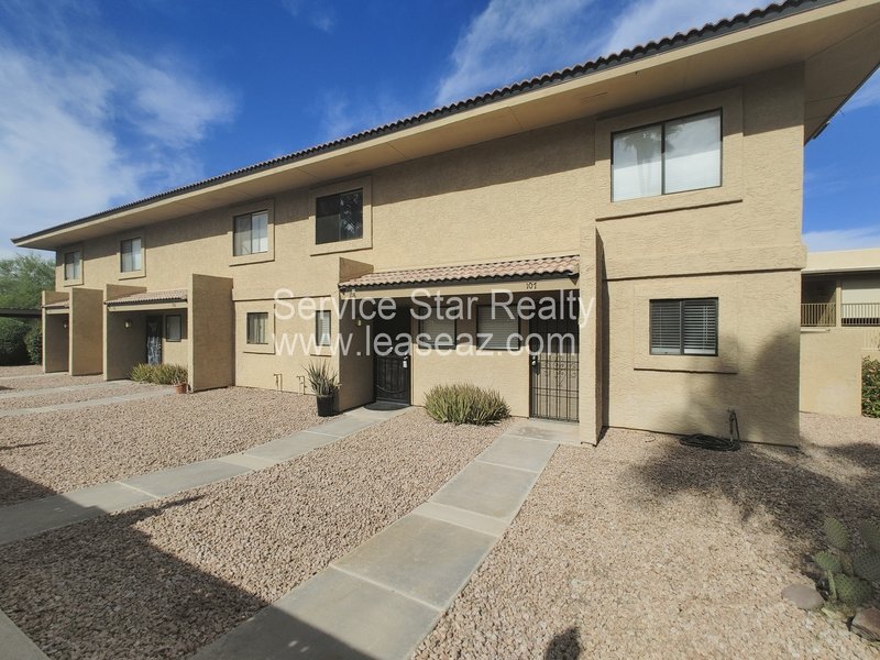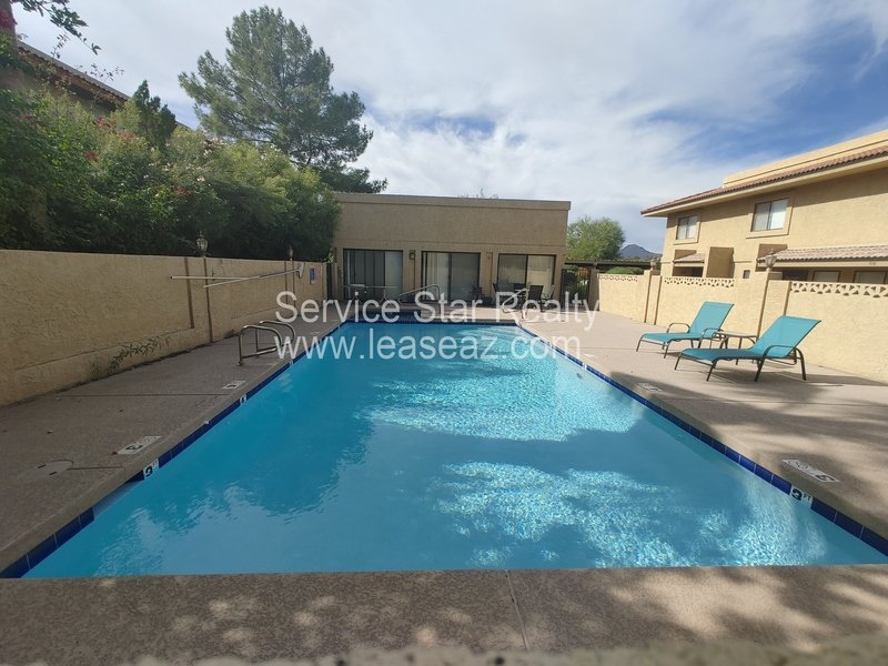 Great 2 story townhome located in the beautiful Fountain Hills Community. 2 Master suites upstairs both with private Bath and Master closets + guest toilet downstairs. Unit Located across from pool. All bathrooms have recently been remodeled and newer wood flooring on the stairs, with easy to care for tile on the main floor & bathrooms and carpet in the bedrooms. Nice kitchen with stainless steel appliances, pleasant private patio and located across from the pool. GREAT LOCATION near Fountain Park, Shopping, Post Office, Library etc.