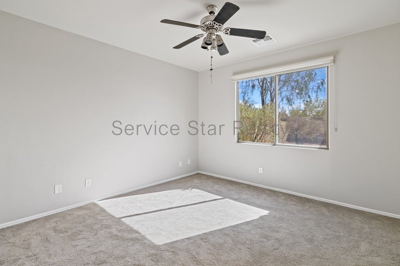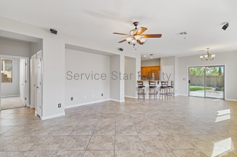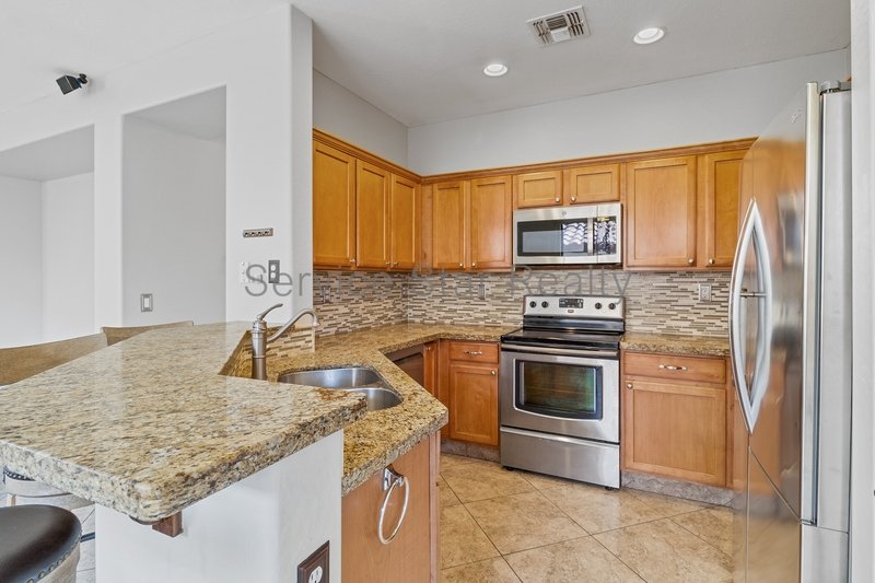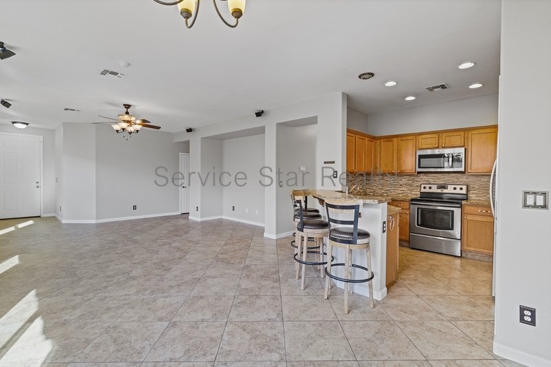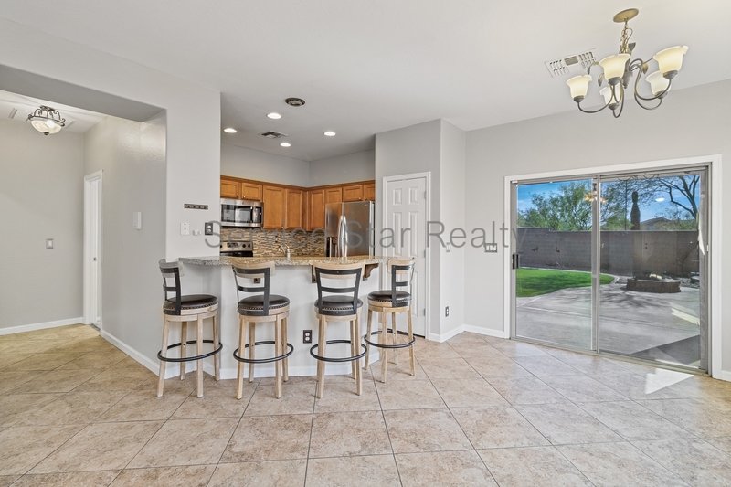This 3-bedroom, 2-bath home offers 1,432 sq. ft. of living space in the highly desirable Anthem community. The open great room leads to a beautifully upgraded kitchen featuring maple cabinetry, granite countertops, stainless steel appliances, and a glass tile backsplash. Sliding doors open to a professionally landscaped backyard designed for enjoying Arizona nights.
