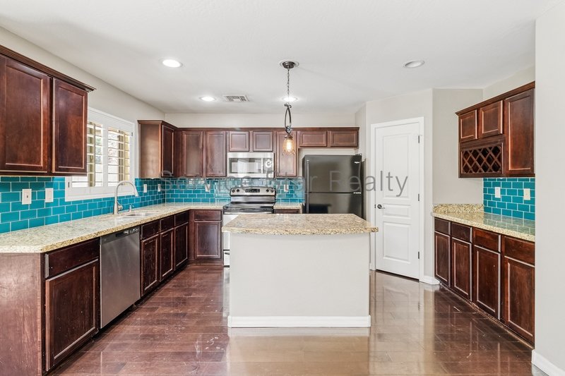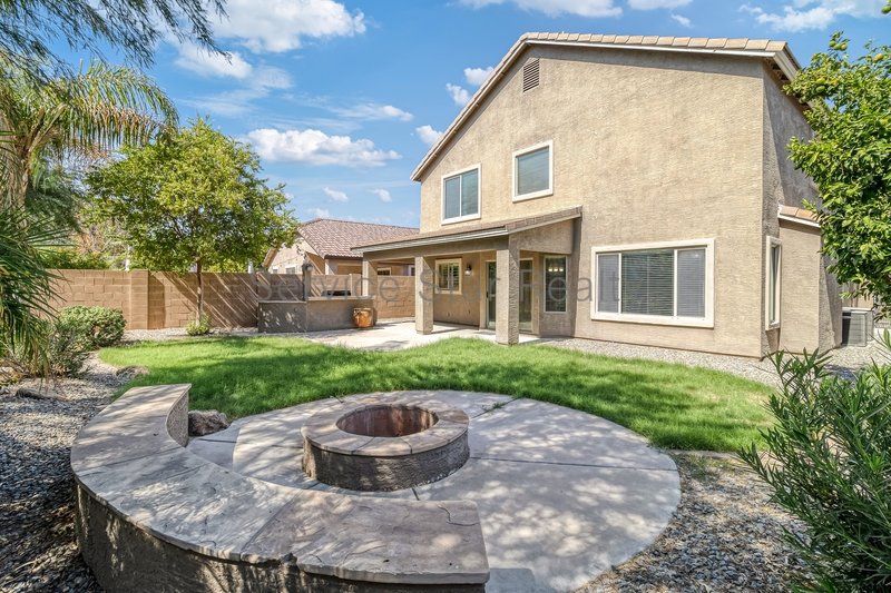 This gorgeous Power Ranch home is truly a Power House with 5 Bedrooms, 3 Bathrooms & Large Backyard. Walk into the long formal living and dining area leading you into the kitchen with subway tile and granite. The family room off of the kitchen is huge and offers a fun open concept feel. There is a full bedroom and bathroom downstairs perfect for guests! The primary bedroom is located upstairs and features dual vanities, walk in closet, and separate shower and tub. Backyard is perfect for entertaining with covered patio, fire pit w/ seating, built in grill, & view fencing with no rear neighbors! This home is located in Power Ranch Community with community pools, trailside park, basketball courts, coved pavilions, fishing lakes and The Barn hosting community events, classes and more!