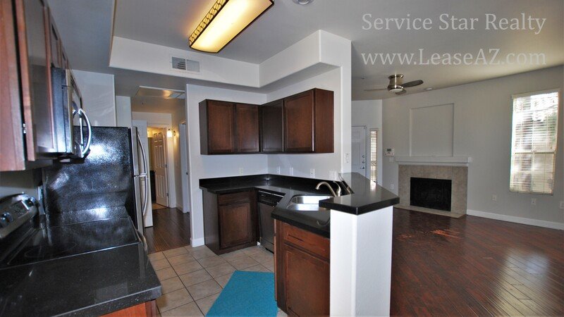 Lumiere Chandler Condominiums BEST DEAL! This Awesome 2+2 Condo in Gated West Chandler is in a Prime Location - Ray/10 with dining, shopping, entertainment options abound! The home opens with a spacious great room with a cozy fireplace and rich wood plank flooring. This comfortable floor plan is an open concept with easy flow between the kitchen living and dining areas. Granite counter kitchen with stainless steel appliances. The split master suite features access to the large covered balcony. The balcony also accessible from the great room overlooks a tree-filled courtyard. The home provides ceiling fans throughout, 9' ceilings, granite counter, and inside laundry with washer and dryer included. The home is only steps away from the community pool. Kyrene Schools and South Mountain Park adjacent.