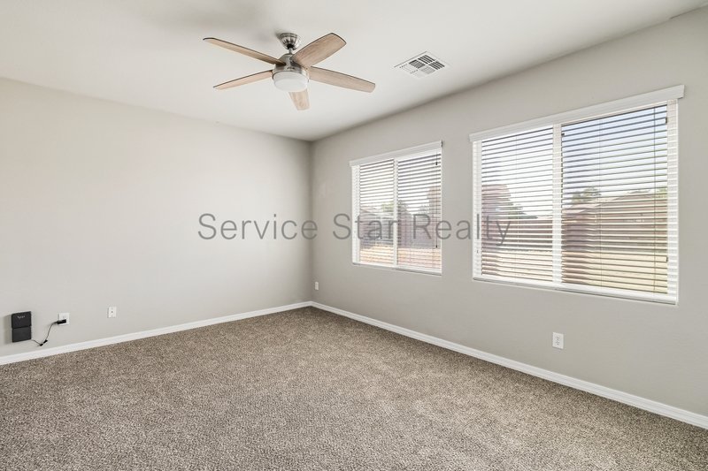 Gorgeous, spacious home on a large lot waiting for you. Complete with brand new paint and carpet, this home offers gas range, granite counter tops, and plenty of counter space to prepare meals. Primary bedroom downstairs with a walk in closet and primary bathroom has dual sinks, separate tub & shower. Secondary bedrooms with walk in closet is upstairs along with the laundry room. Backyard offers the extended patio and the lot is huge with low maintenance. Located within minutes of Copper Sky Regional Park & Copper Sky Golf, close to shopping, grocery stores, coffee shops!