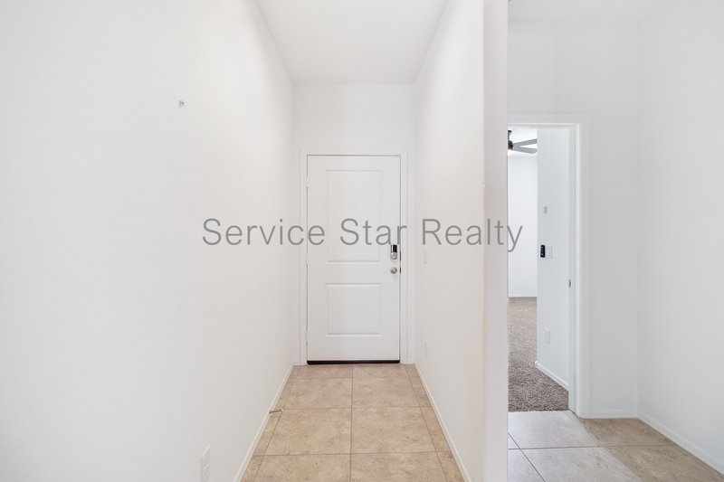 The covered front entry welcome your inside - Notice the light interior and tile flooring. As you walk through the entry hall, two bedrooms will be on your left, along with the full-size hall bathroom!