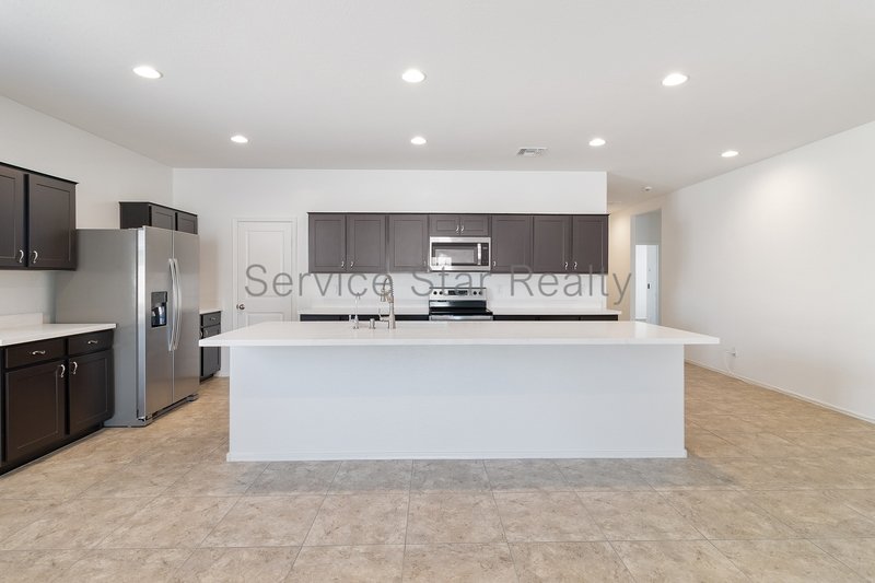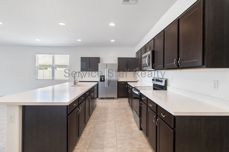 The kitchen is a chef's dream, equipped with all the modern amenities you could desire. The large center island serves as a focal point, complemented by sleek white countertops and stainless steel appliances. Ample cabinetry ensures you have plenty of storage for all your kitchen essentials along with the large pantry!