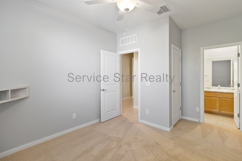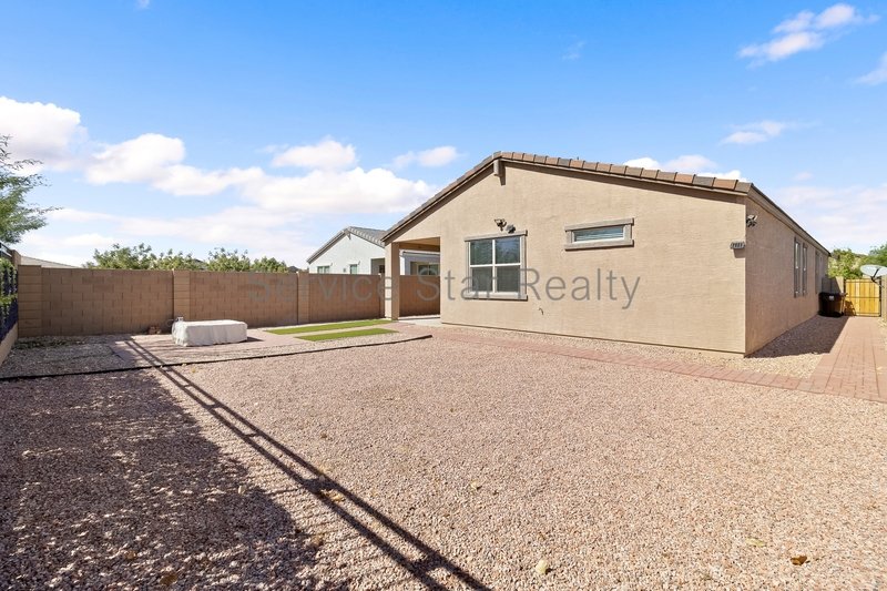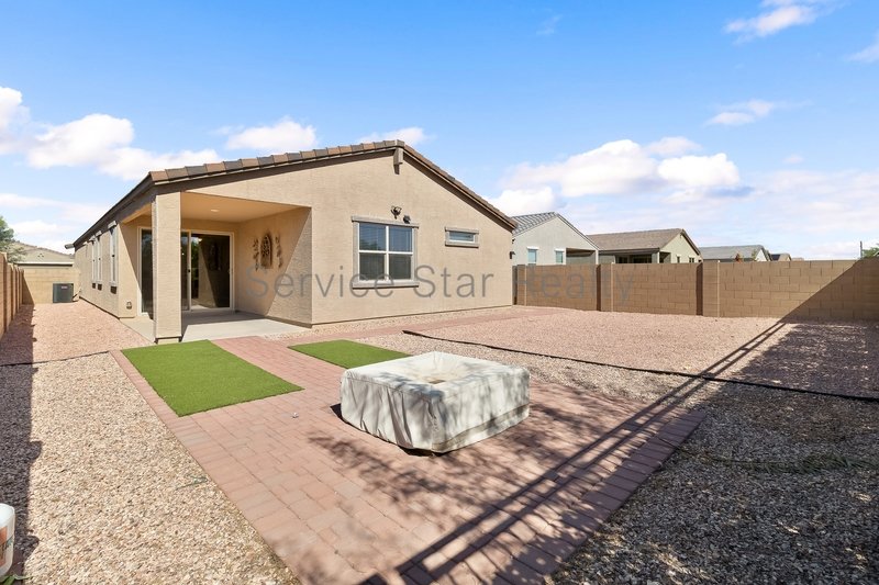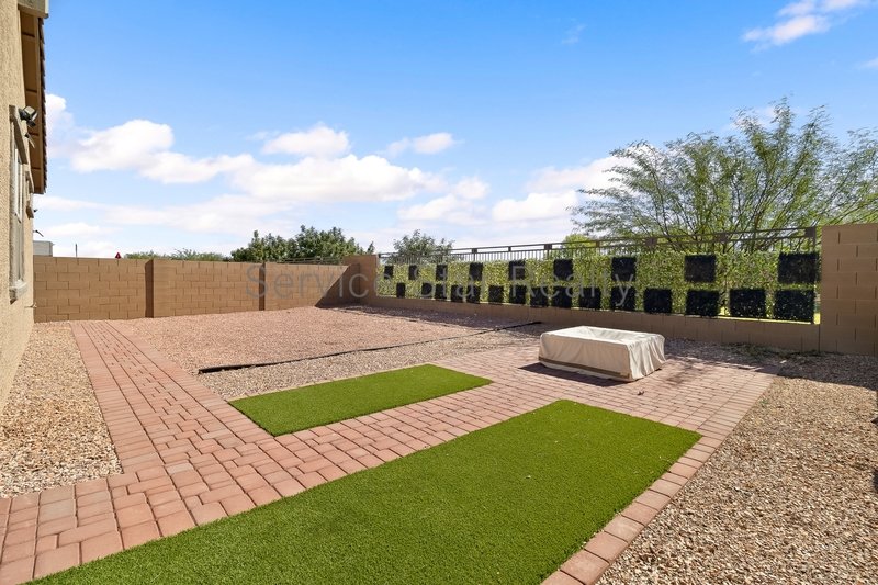 Enjoy outdoor living with a low-maintenance backyard, perfect for enjoying the beautiful Arizona weather. As you step outside, you have a covered patio. Further back, turf and pavers!