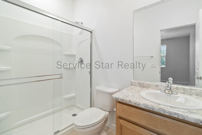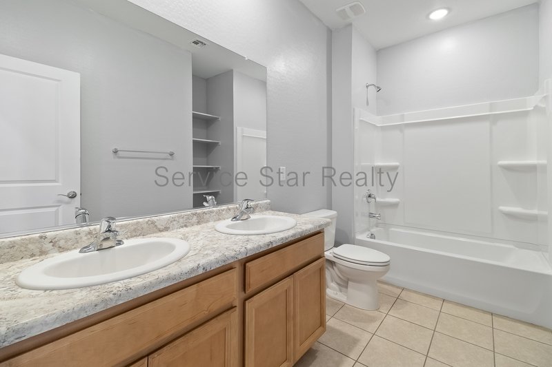 3 additional bedrooms provide lots of flex space. The guest hall bathroom also features upgraded stone counters and a dual vanity.