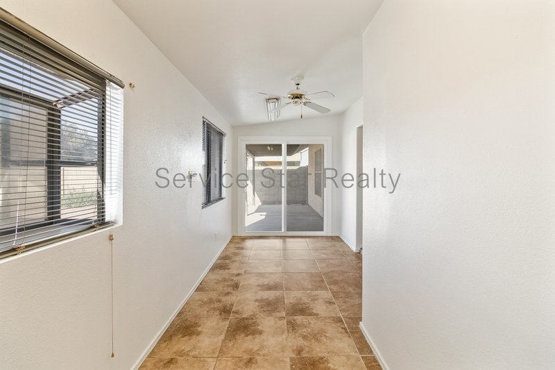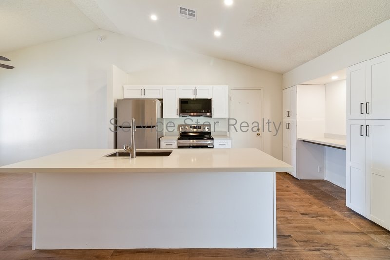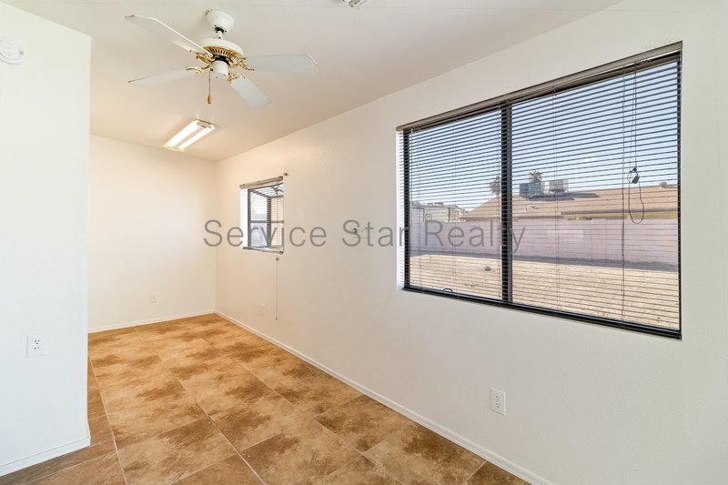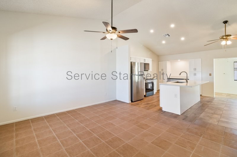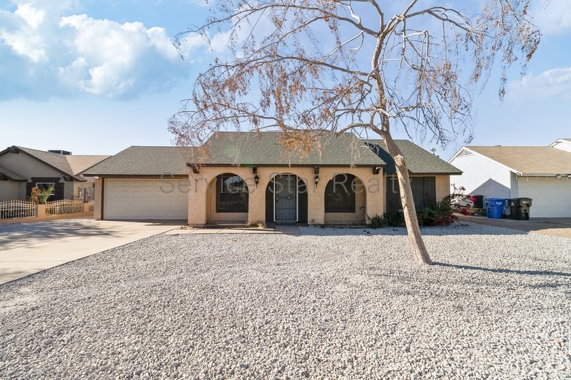 This 3+2 single-family home is open concept with great room appeal and boasts a newly renovated, bright kitchen with soft-close cabinetry and new stainless-steel appliances. The island includes area for bar seating. The primary bedroom faces the backyard and includes a bath. The two guest bedrooms are spacious and share a guest bath. Additional amenities include an attached two car garage with laundry hook ups and storage shelving. Access to the backyard is through the flex space area that can be a play space, office, private den, etc. The property is located near local schools, shopping, and major highways providing access to the greater Phoenix.
