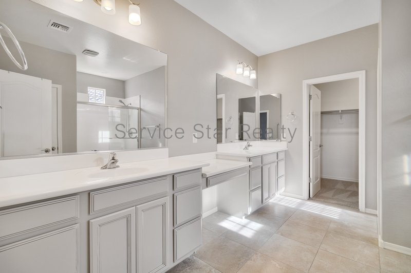 The primary suite is truly expansive, featuring lots of natural light, and an oversized en-suite bathroom with two separate vanities, a bonus seated makeup counter, walk-in closet, and walk-in shower!