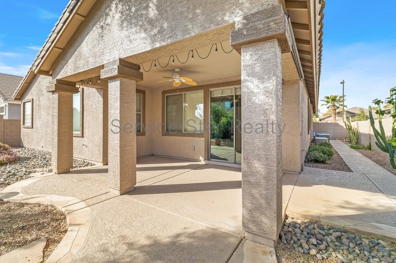 Enjoy the beautiful Arizona weather while relaxing under the covered patio, surrounded by beautiful desert landscaping in the rear yard.