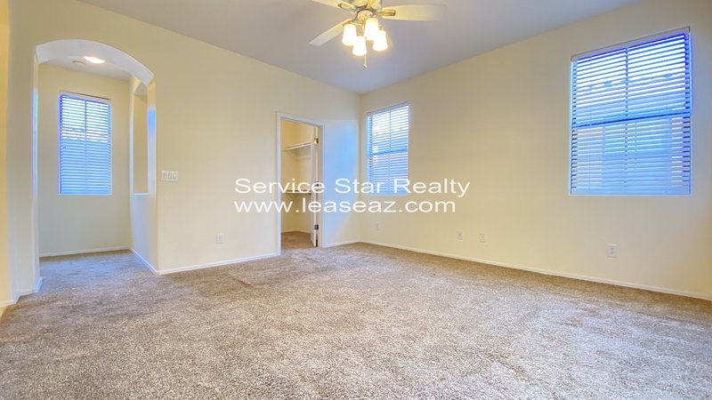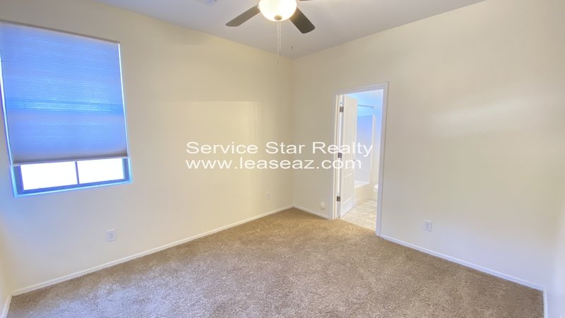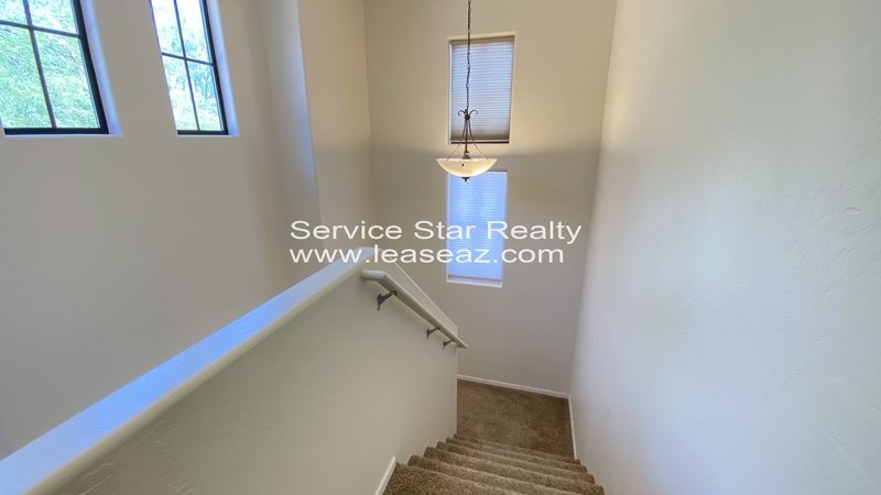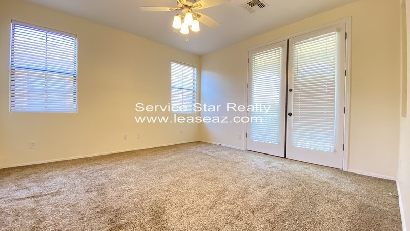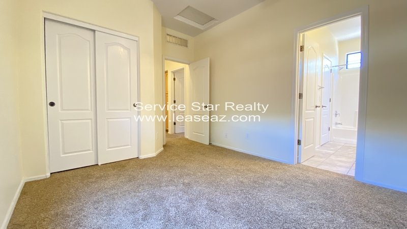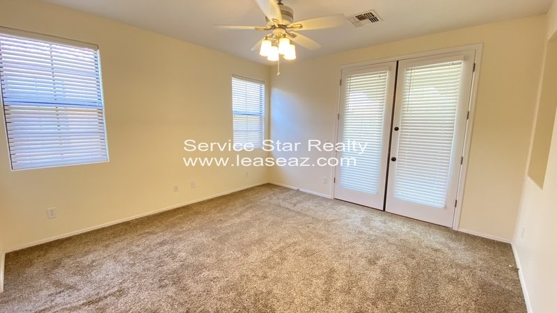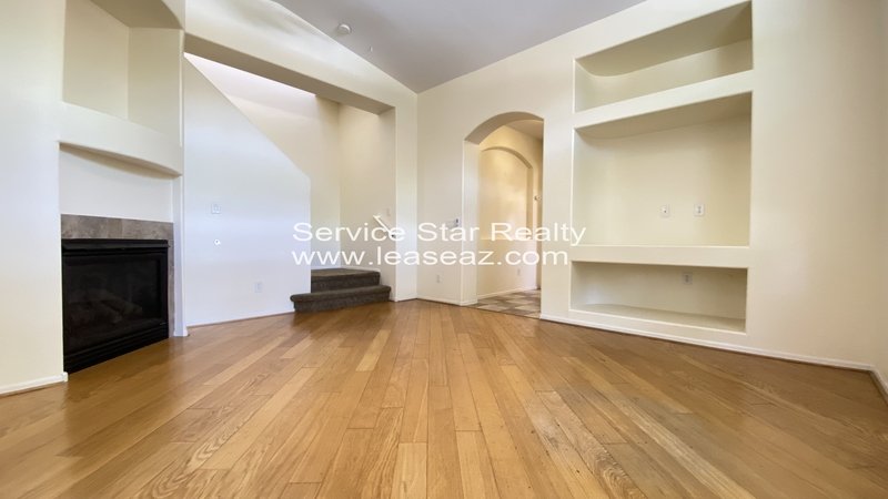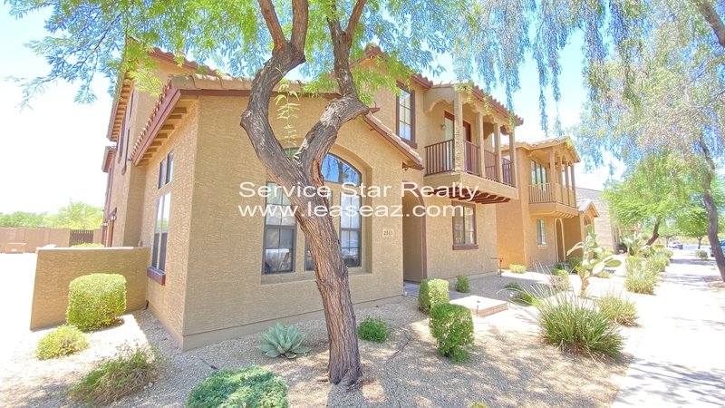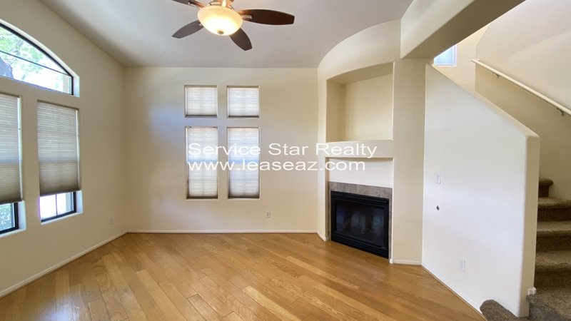 Beautiful 3 Bedroom + Den, 2.5 Bath, Two Story Home in Gated Community in Phoenix. Upstairs is the Master Suite with full bath separate shower and tub, large walk-in closet, and Balcony. The 2 other bedrooms boast a Jack and Jill bath and a 6X6 desk area perfect for office or workspace. Spacious family room downstairs w/fireplace and built-in media shelve. Large open kitchen with island adjoined to spacious eating area overlooking patio. Nice Private and Gated Community with Community Pool & Spa, Sports Court and Recreation Center. The Backyard enjoy community events or available to rent for private events. Great location with easy access to I17 & 303 to escape the heat on the weekends and head North to cool down or access to downtown Phoenix. Close to Shopping centers offering great dinning, shopping, and entertainment. Pets OK.