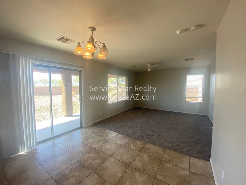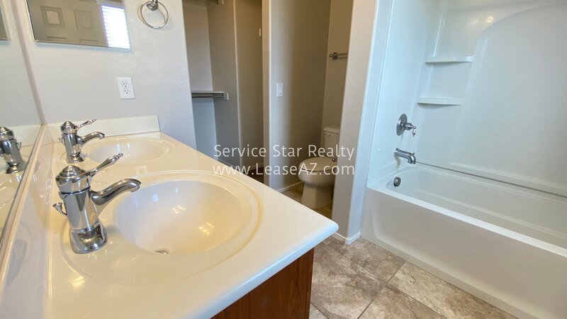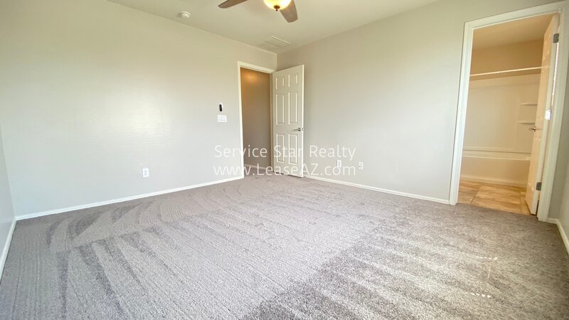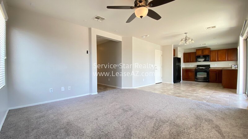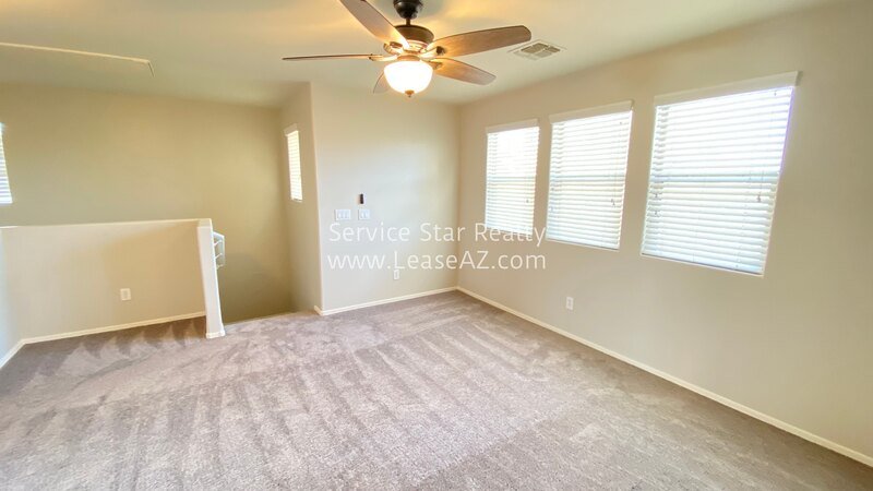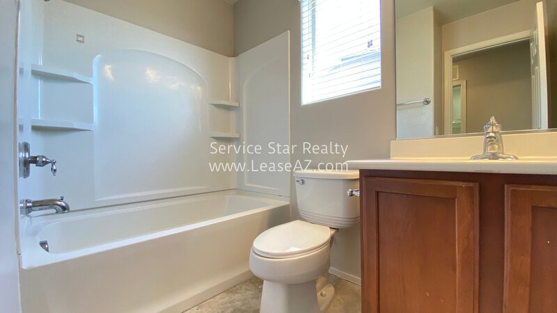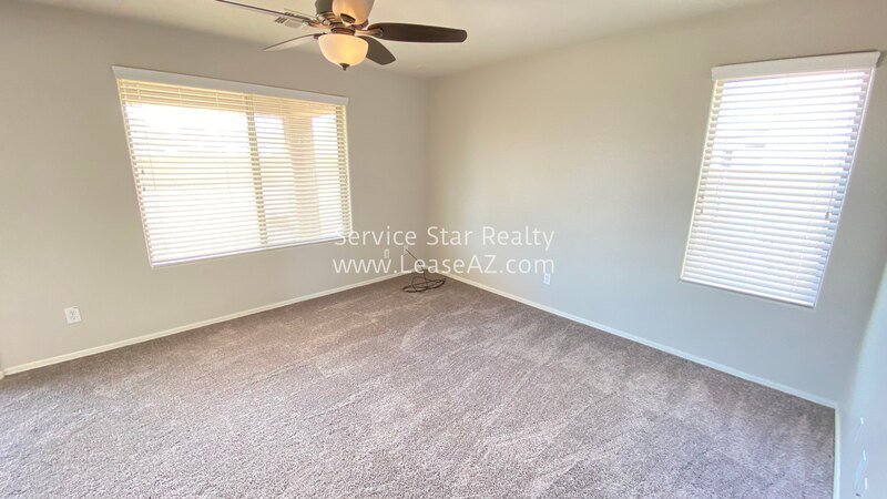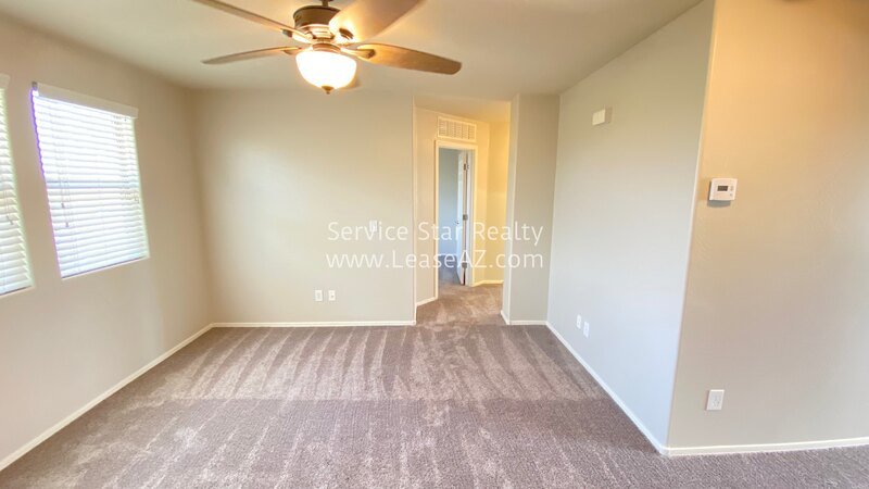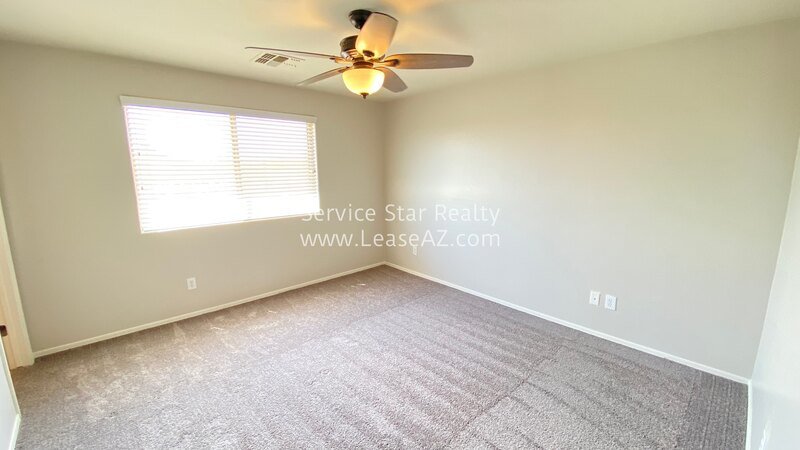 The house has been updated with new carpet, fresh paint, and ceiling fans with remotes. There are also several extras, such as newer landscape rock, trees, and a covered patio perfect for relaxing and enjoying the Arizona sunsets. The community has a pool, Rec Center, rock wall, game room, splash water park, a seasonal cafe, basketball, volleyball, tennis, pickleball, bike/walking paths, and a playground.