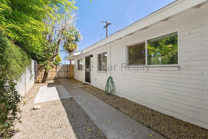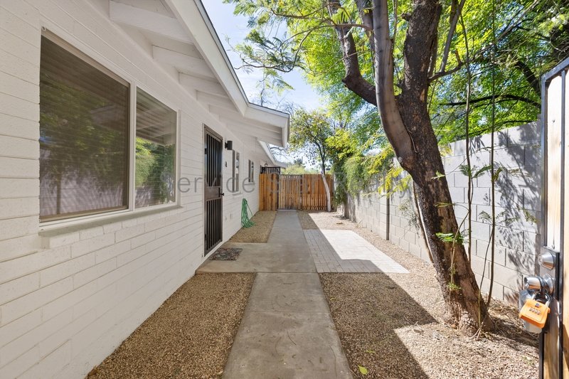This 3+1 home is beautiful! Unit A of a charming mid-century styled duplex located in the heart of the Melrose Manor historic district. It is just a short walk to all the coveted boutiques and restaurants the Melrose district has to offer. Everything in the home has been updated and it offers off street parking. The kitchen features updated oversized tile backsplash, quartz countertops, white shaker style cabinetry, and a stainless appliance package including a gas range. The bathroom is beautiful, with a spacious walk-in shower! The home also boasts tankless hot water, a neutral, warm color palette, and laundry facilities. The private yard is shaded by a mature tree canopy, providing a perfect spot to enjoy morning coffee and entertain guests. Melrose Manor living at its finest.