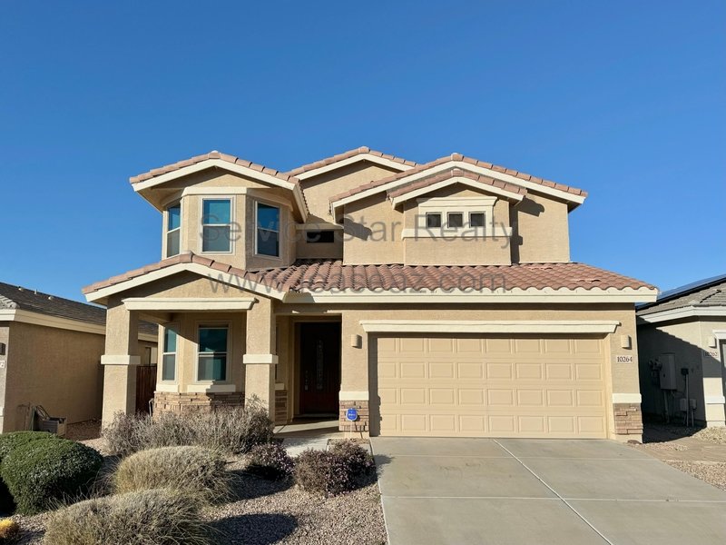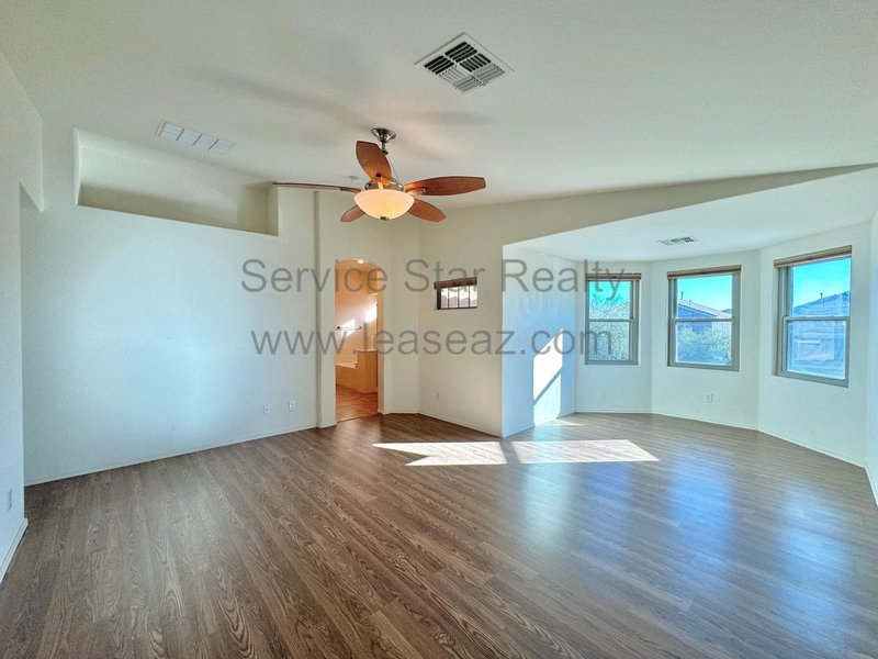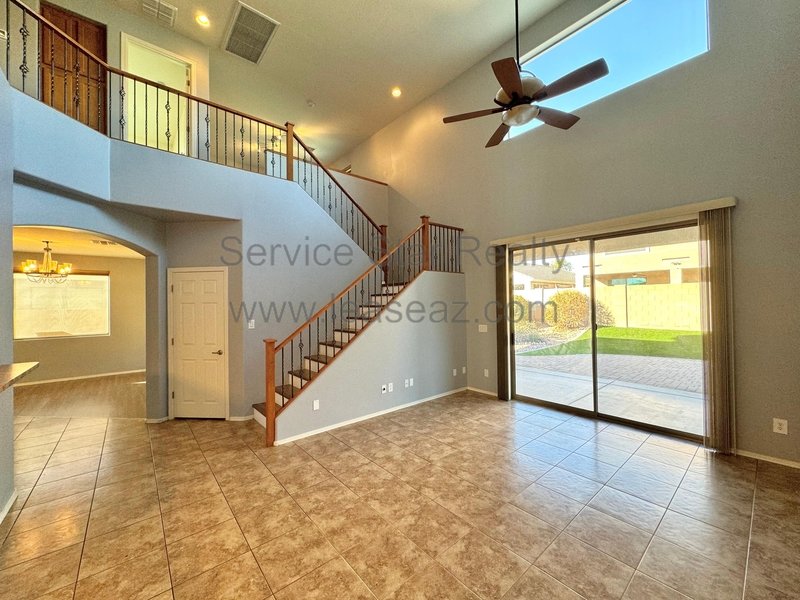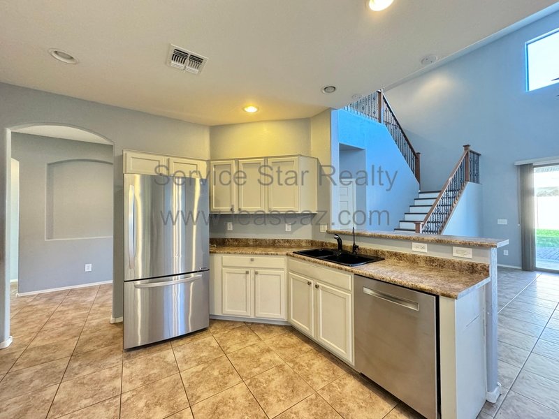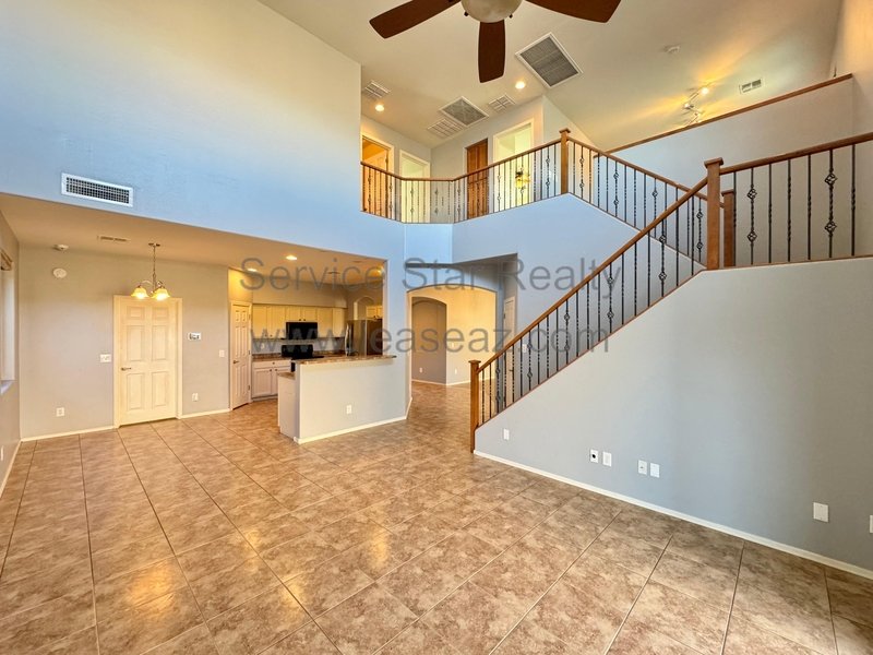 Step into beautiful Southwest living with this recently updated 4-bedroom, 3-bathroom home in Peoria, Arizona. Walking in, you are greeted by an open entryway living area that can serve as a flex space. The home has brand-new flooring and a kitchen that acts as the heart of the home, with brand new fridge. The seamless transition from the kitchen to the main living space is accentuated by the very tall ceiling, creating an open and inviting atmosphere that's perfect for both everyday living and entertaining. Guest bathroom upstairs is conveniently Jack and Jill style, while the upstairs loft provides even more flex space for living.