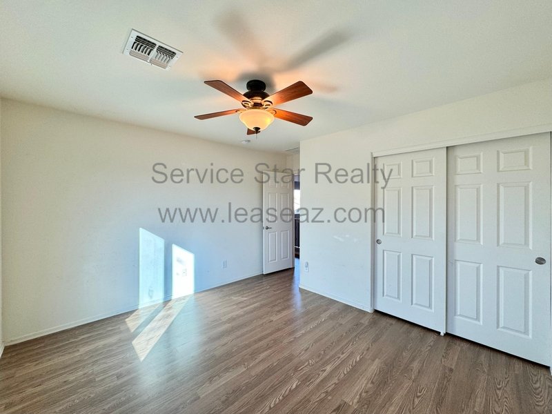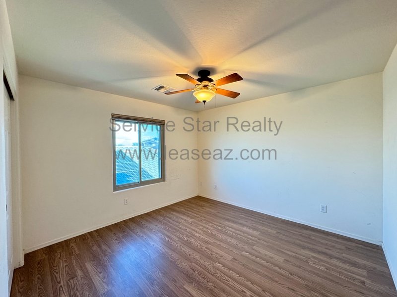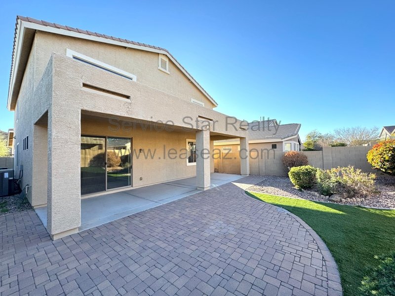 The outdoor space is designed for both enjoyment and ease of maintenance. The low-maintenance yard ensures you spend time enjoying the beautiful Arizona weather. A full-length covered patio with pavers extends the living space outdoors, creating a perfect spot to unwind, adding an extra layer of charm to this property.