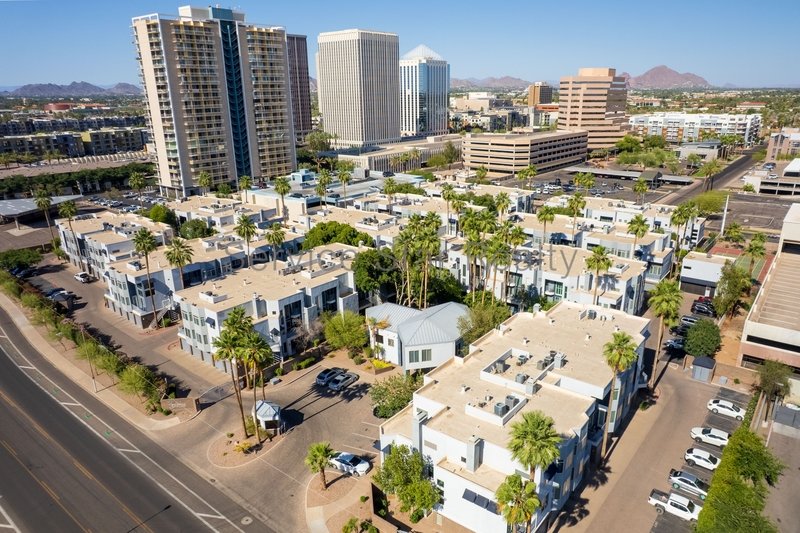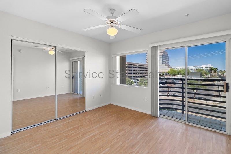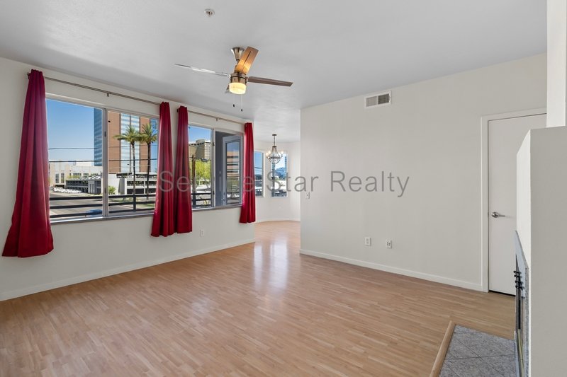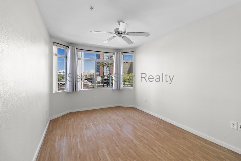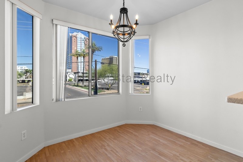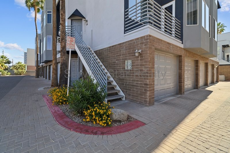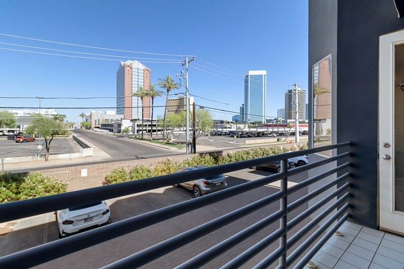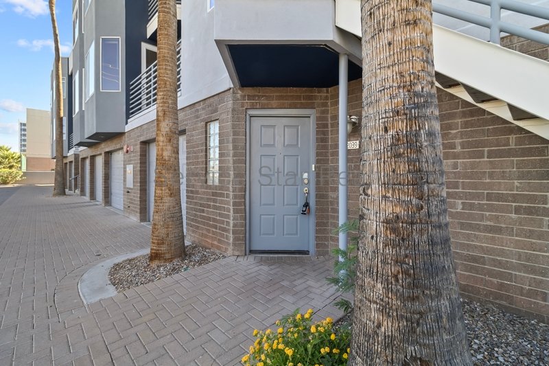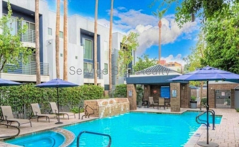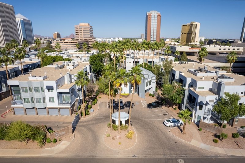 Welcome to this fabulous 2 bedroom midtown condo w/garage in 3rd Ave Palms!. Kitchen includes beautiful white custom cabinets, white appliances and solid surface countertops. Primary en-suite bedroom boasts a large walk-in closet with built-in shelves and drawers. Relax in the living room with a nice cozy fire. Balconies and large windows throughout offer views of the city and lots of natural light. This gated community is conveniently located within walking distance of light rail, dining and entertainment. Many community amenities include, pool, fitness center, clubhouse, spa, tennis court and barbecue grills! Pets under 40lbs permitted. Dont miss out on the opportunity to call this home!