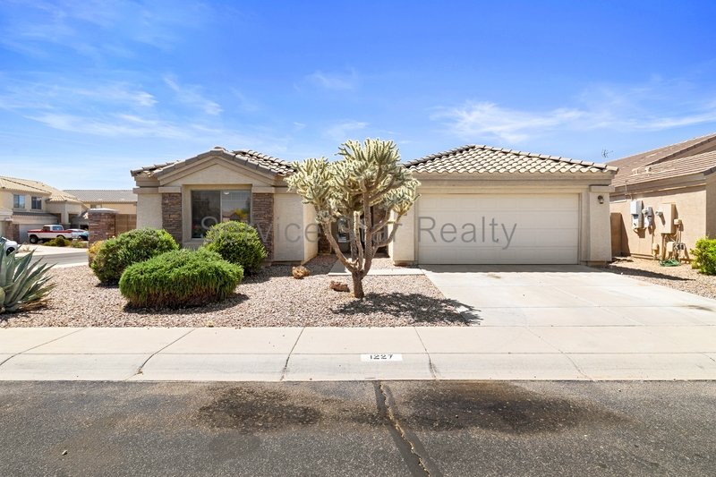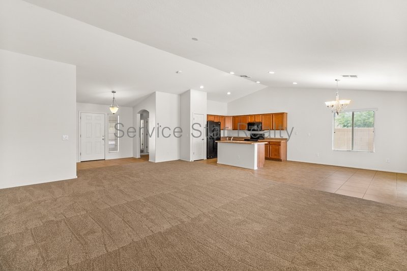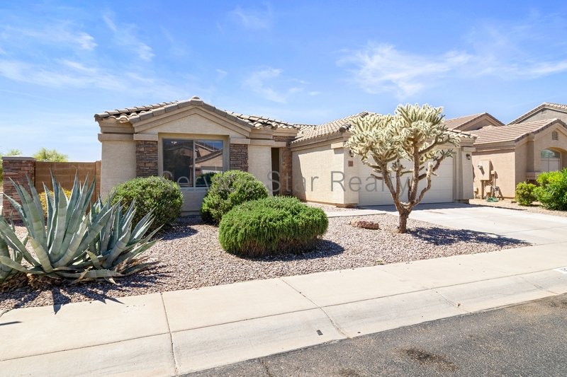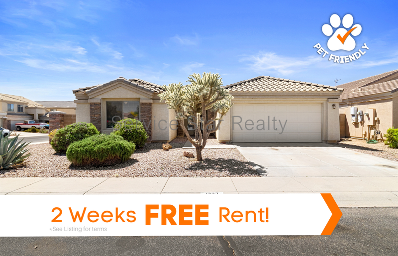 **2 WEEKS FREE RENT!!** ALL NEW PAINT AND CARPET!! 3 Bedroom + 2 Bathroom home in Casa Grande. Open floor plan with vaulted ceilings, providing a spacious and airy atmosphere. Kitchen features refrigerator, range/oven, build in microwave, dishwasher, kitchen island and pantry. The primary suite includes a spacious bedroom and an impressive ensuite bathroom, walk in closet and separate shower and tub. Backyard features covered patio and easy to maintain landscaping. Located with quick access to Freeway 387 and I10. Pet restrictions are 1 small dog under 25lbs, no cats allowed.