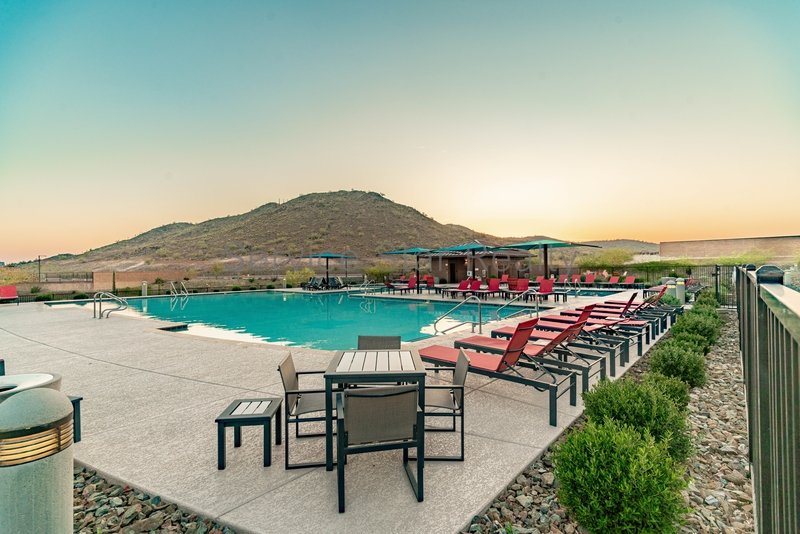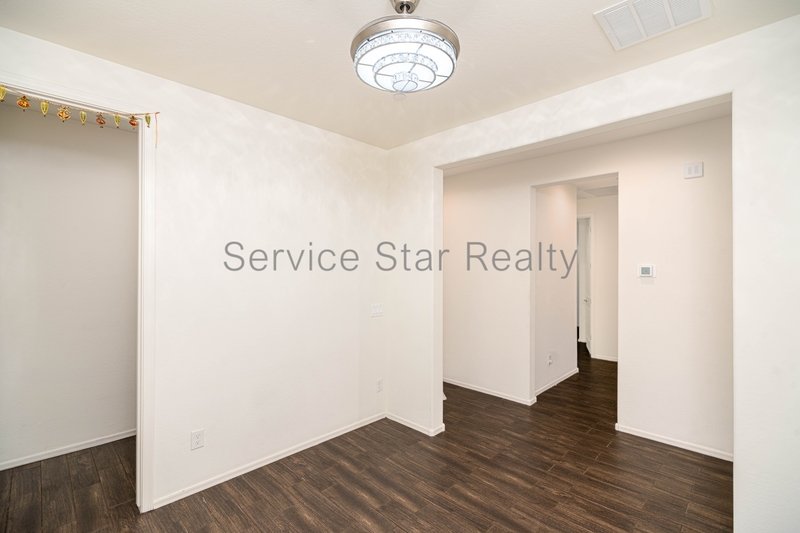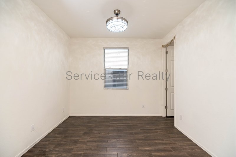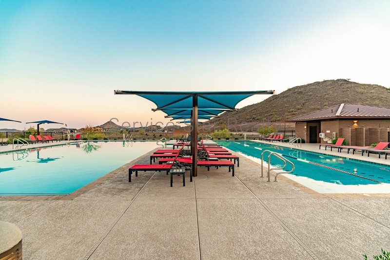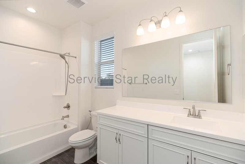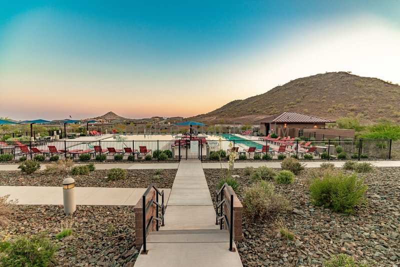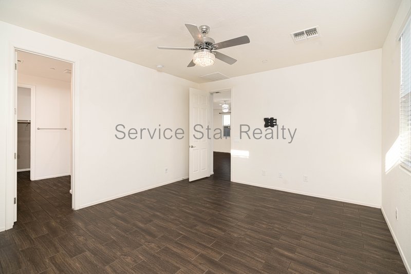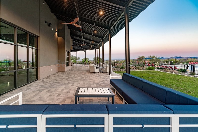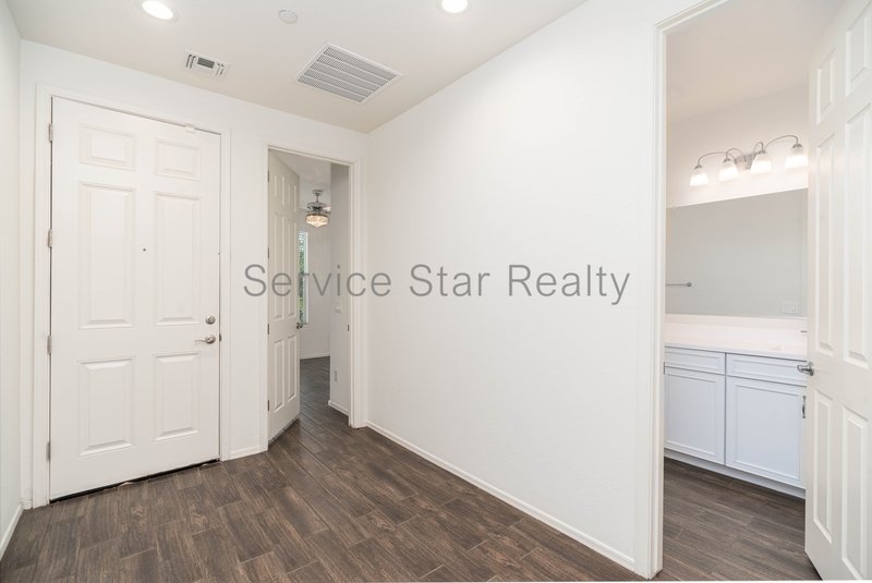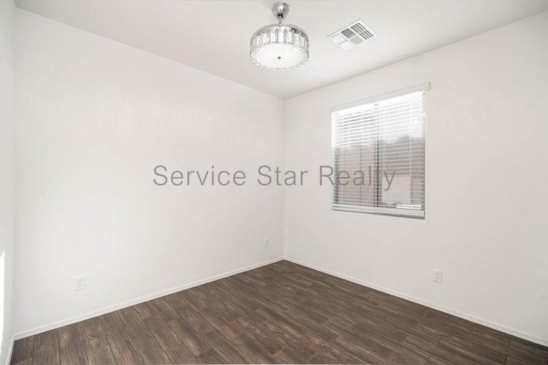 This exceptional open-concept, split-floor plan home combines comfort with modern conveniences and solar. Featuring three bedrooms and three bathrooms, it boasts dark wood grain tile flooring, bright white cabinetry, quartz countertops, and a stylish backsplash. The great room is enhanced by bi-parting double sliding doors that seamlessly connect the living space to a custom landscaped patio and yard, complete with artificial turf, cut stone benches, and planters. The home includes two guest rooms at the front and a cozy office adjacent to the great room. The master suite is located at the back, offering a spacious walk-in closet, a walk-in shower, and a private commode area. Additional amenities comprise a garage with complete epoxy flooring, a soft water system, and SOLAR system This beautiful home in Peoria Northern Vistancia Neighborhood is a must-see! You will absolutely love it!