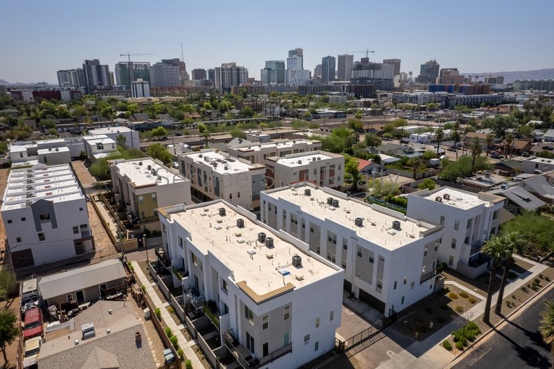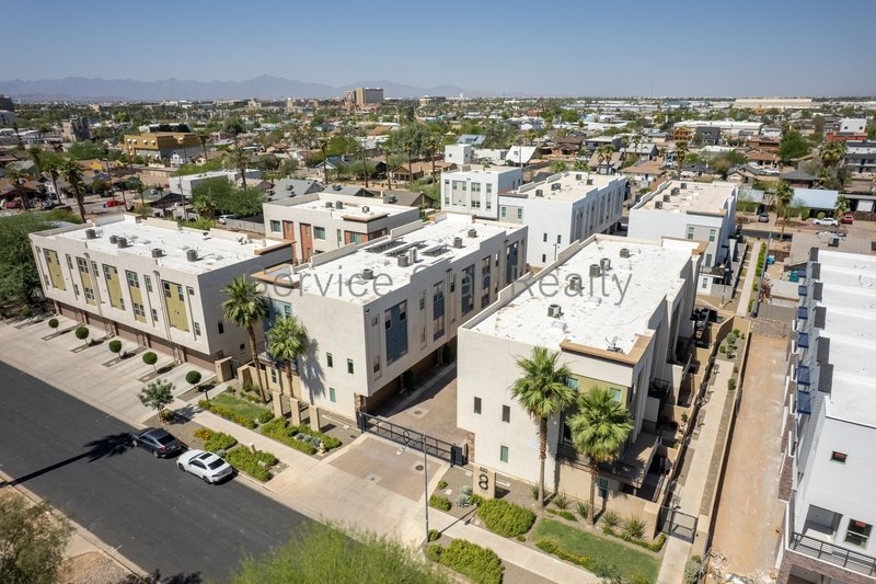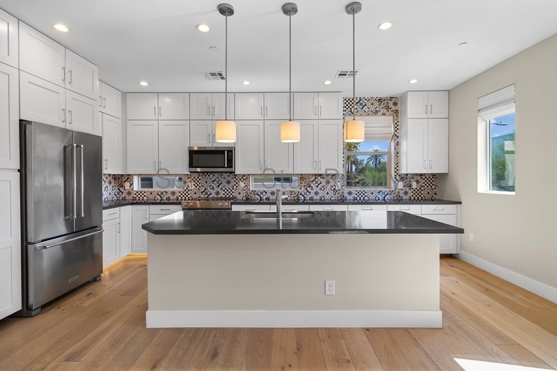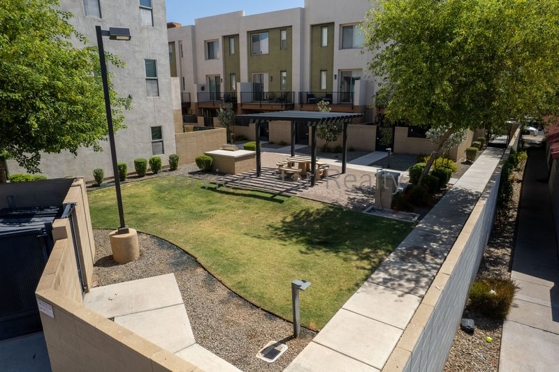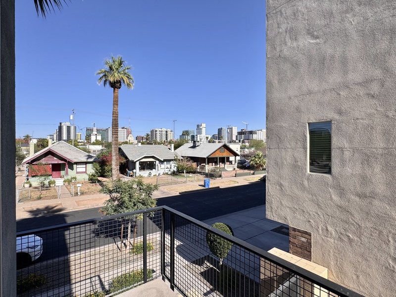 Natural light is in abundance, with lots of windows and large glass sliding doors. This level also has a balcony, providing an indoor-outdoor feel while allowing you to enjoy the beautiful Arizona weather. The balcony boasts views of the downtown skyline!