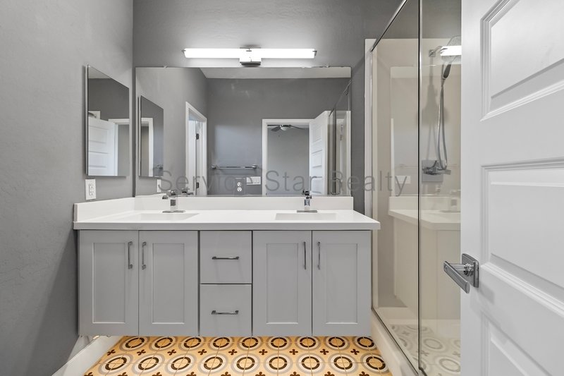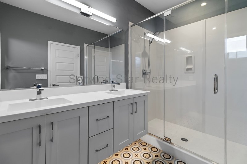 Upstairs, the primary suite is large, boasting a walk-in closet, dual-vanity bathroom, and oversized glass walk-in shower!