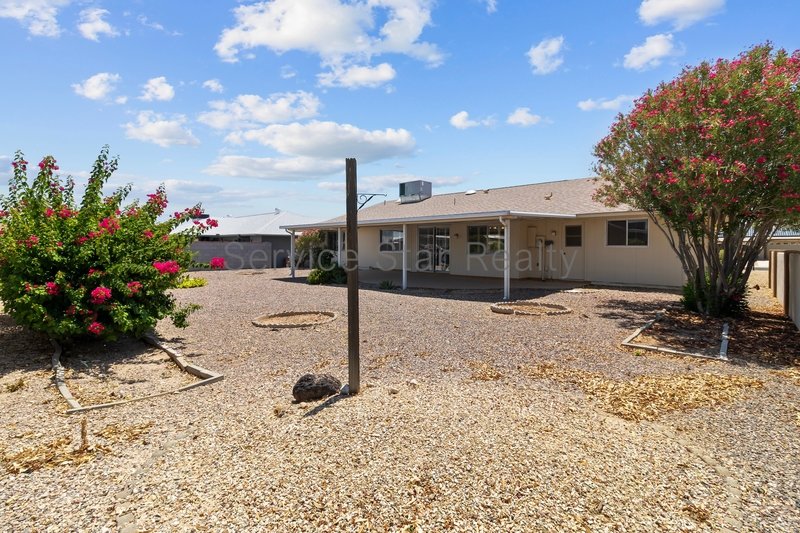 Outside, enjoy low-maintenance desert landscaping in both the front and backyard. A covered rear patio offers a perfect spot to relax, sip coffee, or soak in Arizona's beautiful weather. The front of the home also includes a charming porch area an ideal spot to unwind, greet neighbors, or enjoy a morning cup of tea.