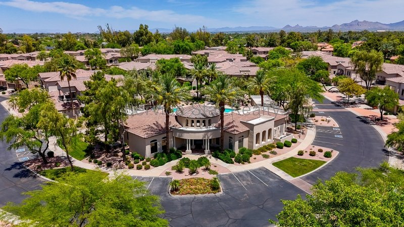 HOA AMENITIES AND SERVICES: Sovanna at Scottsdale Country Club offers resort-style amenities including a community pool, spa, clubhouse, and fitness center.