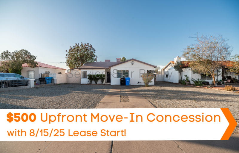 This charming 4 bedroom home is located in Encanto, with convenient access to the 51 and I-10 and just minutes from Downtown! The home sits on an oversized lot with a large backyard featuring a covered patio and RV gate access from the rear alley. The living room boasts a wood burning fireplace, kitchen includes all appliances, walk in pantry and separate laundry room with storage cabinets and washer/dryer included. *Outdoor storage is not available for tenant use.