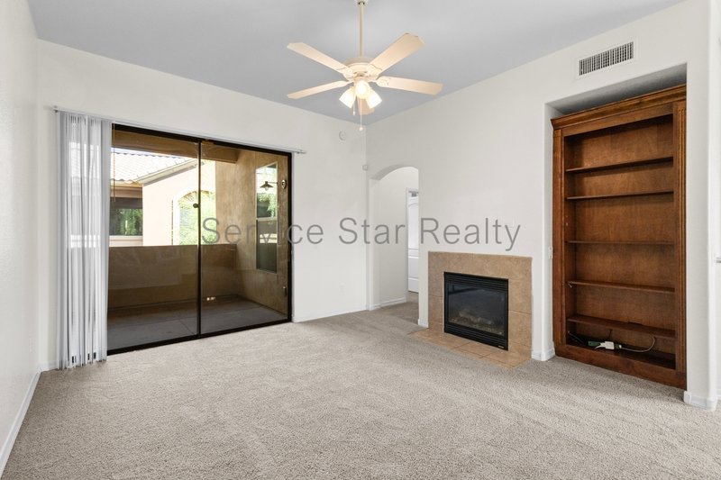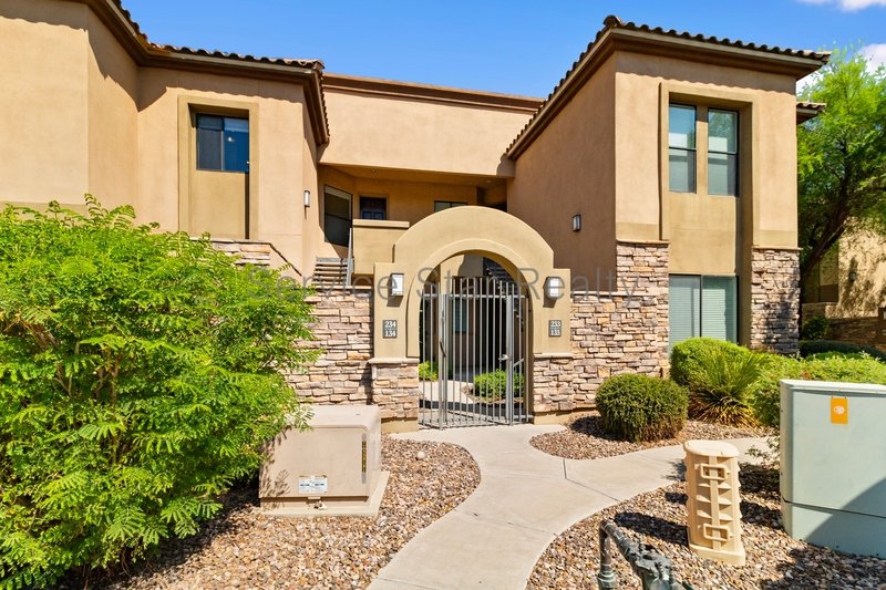 Welcome to this beautifully maintained 1-bedroom, 1-bath condo with an attached garage, nestled within a secure, gated community in the heart of Paradise Valley. This inviting home offers a blend of comfort, style, and convenienceperfect for full-time living or a lock-and-leave lifestyle. Step inside to discover a thoughtfully designed interior featuring a cozy fireplace, ideal for relaxing evenings and a private balcony - perfect for enjoying your morning coffee or evening sunsets. The kitchen is a chefs delight, featuring rich cherry wood cabinetry, sleek stainless-steel appliances, and ample cabinet and counter spaceideal for both everyday meals and entertaining guests. The spacious primary bedroom includes a generous walk-in closet complete with built-in shelves and drawers, providing smart and stylish storage solutions. Enjoy resort-style living with access to premium community amenities including a sparkling pool, relaxing spa, and fully equipped fitness center. With easy access to Loop 101, youre just minutes from world-class shopping, dining, golf courses, and entertainment options. Dont miss your opportunity to live in one of the most desirable locations in the Valley! No pets please!