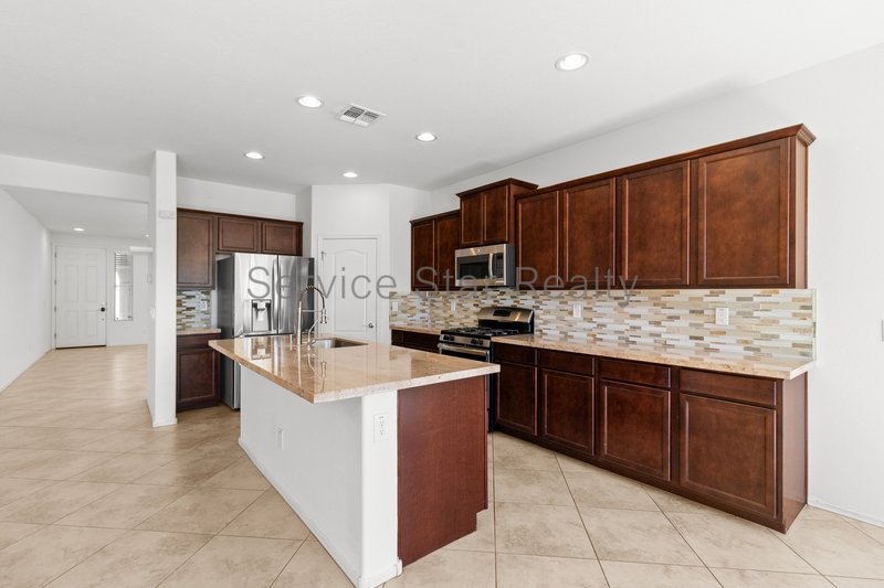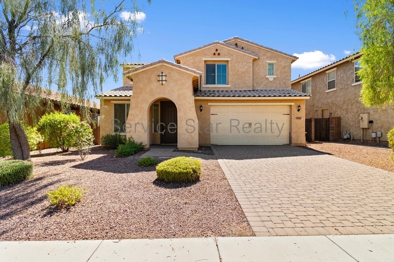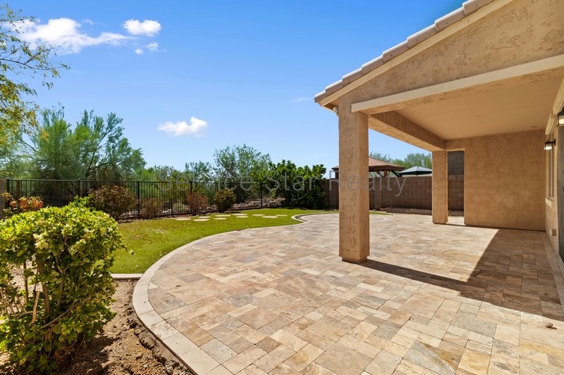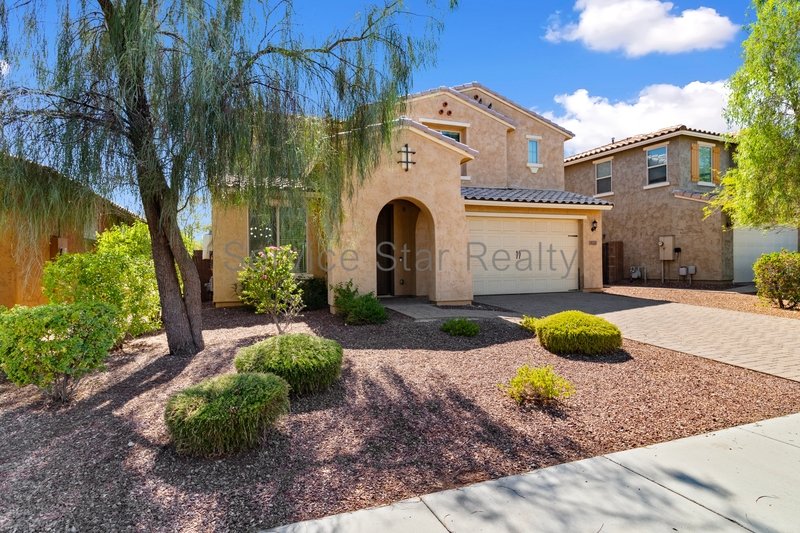 Welcome to this beautifully appointed 5-bedroom, 4-bathroom home nestled in the desirable community of Sonoran Commons in North Phoenix. Ideally located near the I-17 and Loop 101, youll enjoy convenient access to the best shopping, dining, and entertainment the North Valley has to offer. Step inside to discover high ceilings, elegant tile flooring, cozy carpeted bedrooms, and ceiling fans throughout. The expansive great room seamlessly connects to an oversized kitchen, complete with granite countertops, stainless steel appliances, a center island, and a spacious dining area that overlooks a meticulously landscaped backyard. Enjoy the serene outdoor space featuring a covered patio, low-maintenance artificial turf, and unobstructed views of the desert landscapeperfect for taking in breathtaking Arizona sunsets. The first floor also offers a formal living and dining area, along with a private guest bedroom featuring a walk-in closet and full bathroomideal for visitors or multi-generational living. Upstairs, the generous primary suite boasts a luxurious ensuite with dual vanities, a soaking tub, a walk-in shower, a private commode room, and a spacious walk-in closet. You'll also find three additional bedroomseach with walk-in closetsone with en suite access, plus an additional full bathroom. Additional features include a 3-car tandem garage and solar energy system. Solar payment and electric charges will be posted monthly by SSR to your ledger. Dont miss your chance to own this exceptional home in one of North Phoenixs most sought-after neighborhoods! RO system has been bypassed and is not functional.