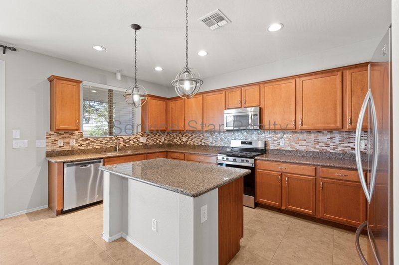Welcome to this beautiful 2-story home perfectly situated in the desirable Queen Creek community! Featuring 5 spacious bedrooms and 3 full bathrooms, this home offers both comfort and style. The kitchen is a chefs dream with granite countertops, stainless steel appliances including a gas range, refrigerator, dishwasher, and microwave.