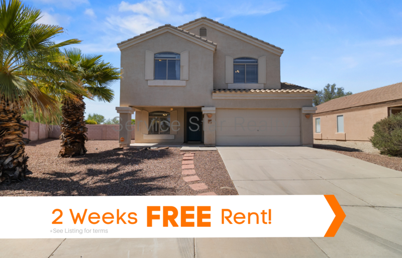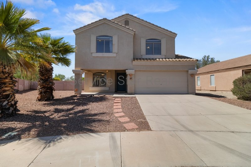 Gorgeous 4+2.5 with den and large loft! HUGE backyard! This home features a fantastic open floor plan that includes high ceilings, window coverings throughout, ceiling fans, excellent lighting, and is cable/internet ready. The kitchen offers plenty of cabinet space and ample room for cooking and entertaining plus new appliances. This home also boasts a huge loft area upstairs and an extra-large den! The master suite includes ceiling fans, window coverings, a walk-in closet, and a spacious bath. The backyard is very large, providing lots of room for friends, family, and pets! New stainless steel appliances are being installed prior to move-in. Great location in Goodyear!
