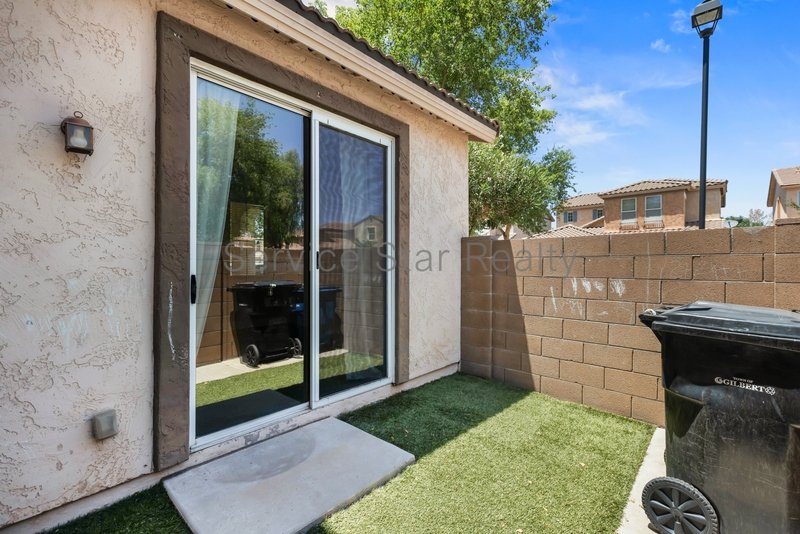 The backyard is low-maintenance and designed for year-round enjoyment, featuring artificial turf and a private gate to the surrounding neighborhood. The front yard boasts attractive desert landscaping, and a two-car garage provides ample parking and storage.